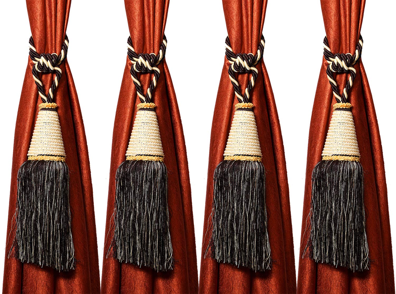 Included Components : | Package Content: 4 Pieces Curtain Tie Back Tassel Set,Color: Brown, Material: Polyester and Dimension: 105x7x7 CM, Design: beads,Kuber Industries curtain tie back tassel is made of high quality polyester material. Curtain set is uncompleted without tassel tie back, when curtain not in use then use tie back to hold curtain. ,Tassel tie back may consist of a single or paired set of tassels connected to a rope or braid with either one or two loops.,Tassel Tie back increases the beauty of curtain. With its elegant design you can also use it as décor or to hold back any curtain in your home. |