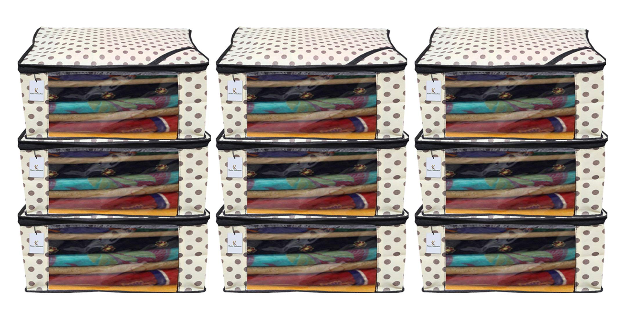 Made from durable, wear and tear-resistant non-woven black fabric. Attractive color and design. Can keep upto - 10 to 15 sarees. Lightweight and flexible saree covers. Carefully stitched to offer additional strength. Transparent see-through window for easy identification of contents. Durable zipper for easy opening and closing. Long life high quality saree cover bag for organizing your costly and favourite sarees. Package contents: 9 pieces saree covers. Color- ivory, black polka dot design. Made from durable, wear and tear-resistant non-woven fabric. Can keep upto - 10 to 15 sarees. Lightweight and flexible saree covers. Carefully stitched to offer additional strength. Transparent see-through window for easy identification of contents. Durable zipper for easy opening and closing. Long life high quality saree cover bag for organizing your costly and favourite sarees.Detailed Specifications: