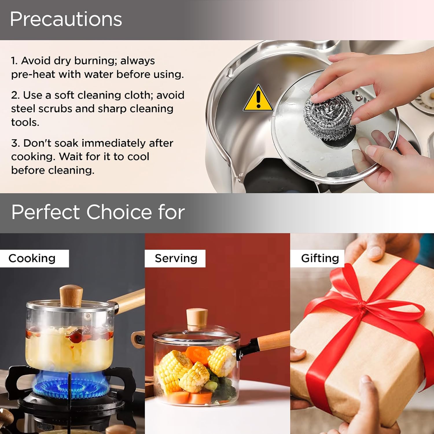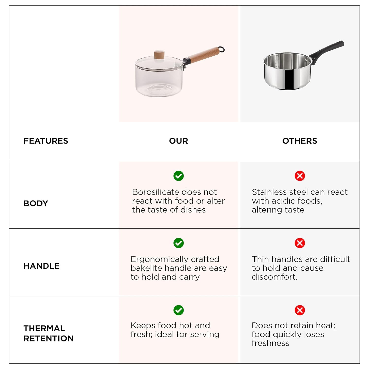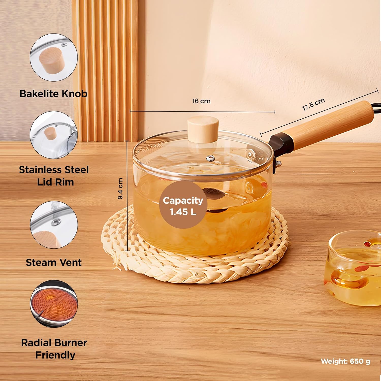 Introducing the Kuber Industries Borosilicate Glass Saucepan, a versatile and durable addition to your kitchen essentials. Made from high-quality borosilicate glass, this saucepan is designed to withstand temperatures ranging from -20℃ to 300℃, making it perfect for various cooking needs. With a generous capacity of 1450ml, it is ideal for everyday use by families, mothers, and wives. The Kuber Industries Borosilicate Glass Saucepan is not only odor and stain-resistant but also lead-free and non-toxic, ensuring a healthy cooking experience. Its lightweight and scratch-resistant design make it a perfect choice for those looking for a sturdy yet easy-to-clean option. Additionally, this saucepan is microwave and freezer safe, providing added convenience for cooking, storing, and reheating food. Ideal for cooking a variety of dishes such as soups, sauces, pasta, and more, this saucepan is suitable for use on induction cooktops, gas stoves, and even in the oven. The transparent glass material allows you to monitor the cooking process easily. Included in the purchase is a saucepan with a lid for added versatility. With top-rated reviews and a reputation for high quality, the Kuber Industries Borosilicate Glass Saucepan is a value-for-money investment that meets the daily cooking needs of many. Purchase now and elevate your cooking experience with Kuber Industries .Detailed Specifications: