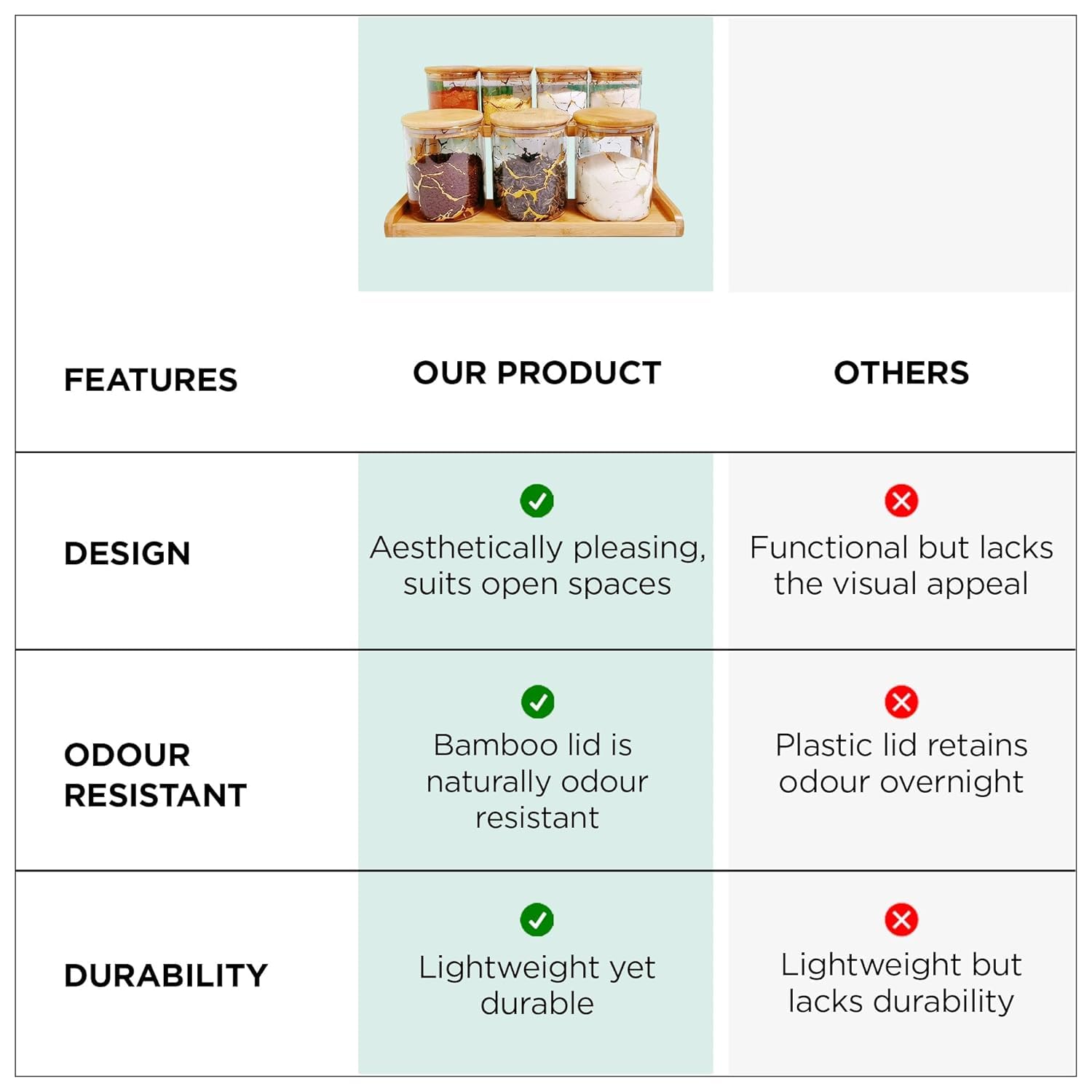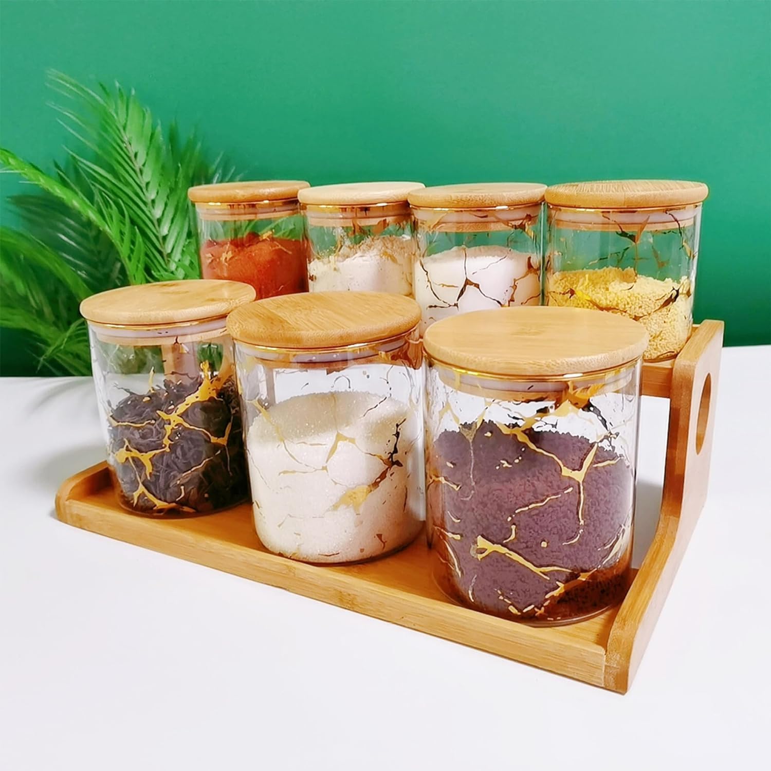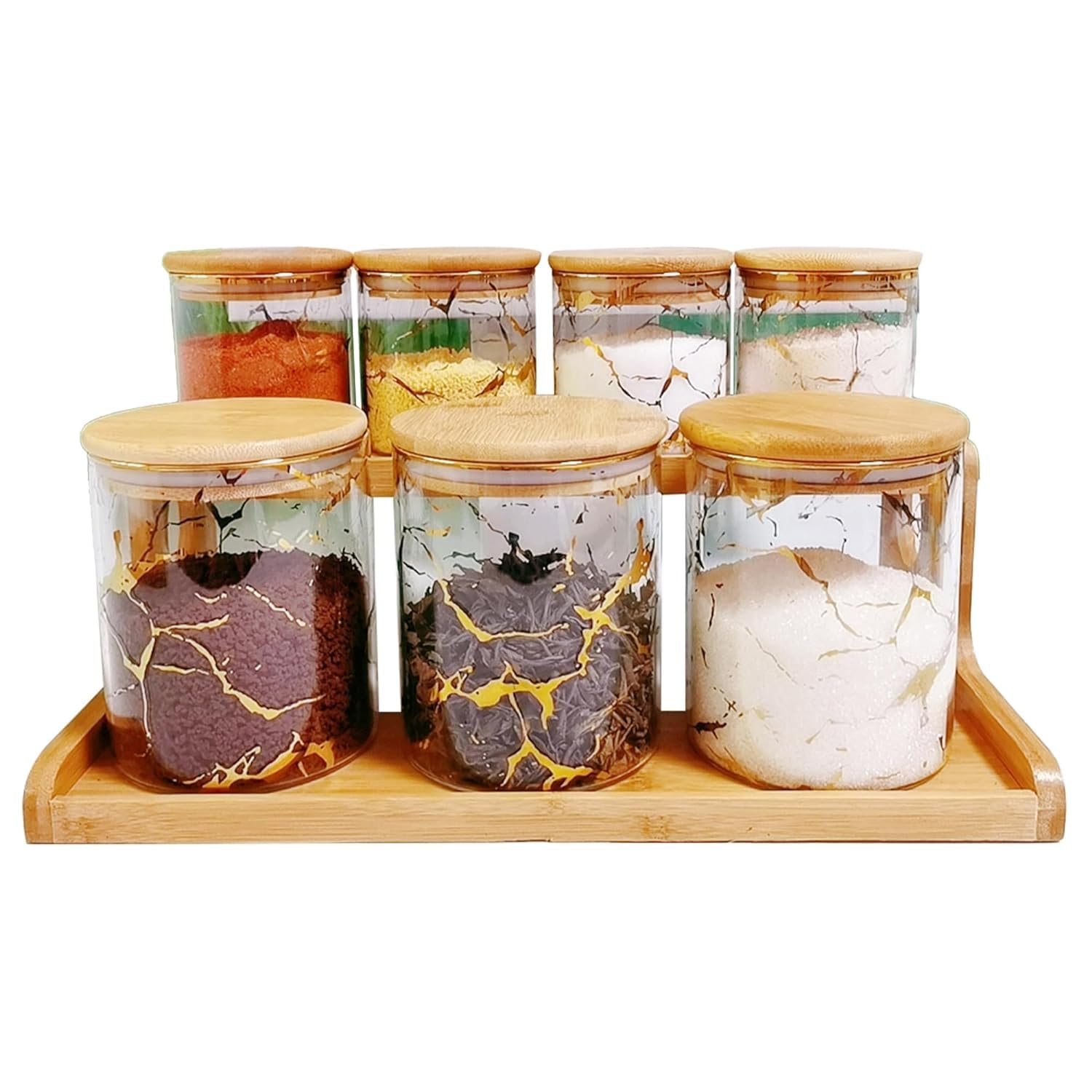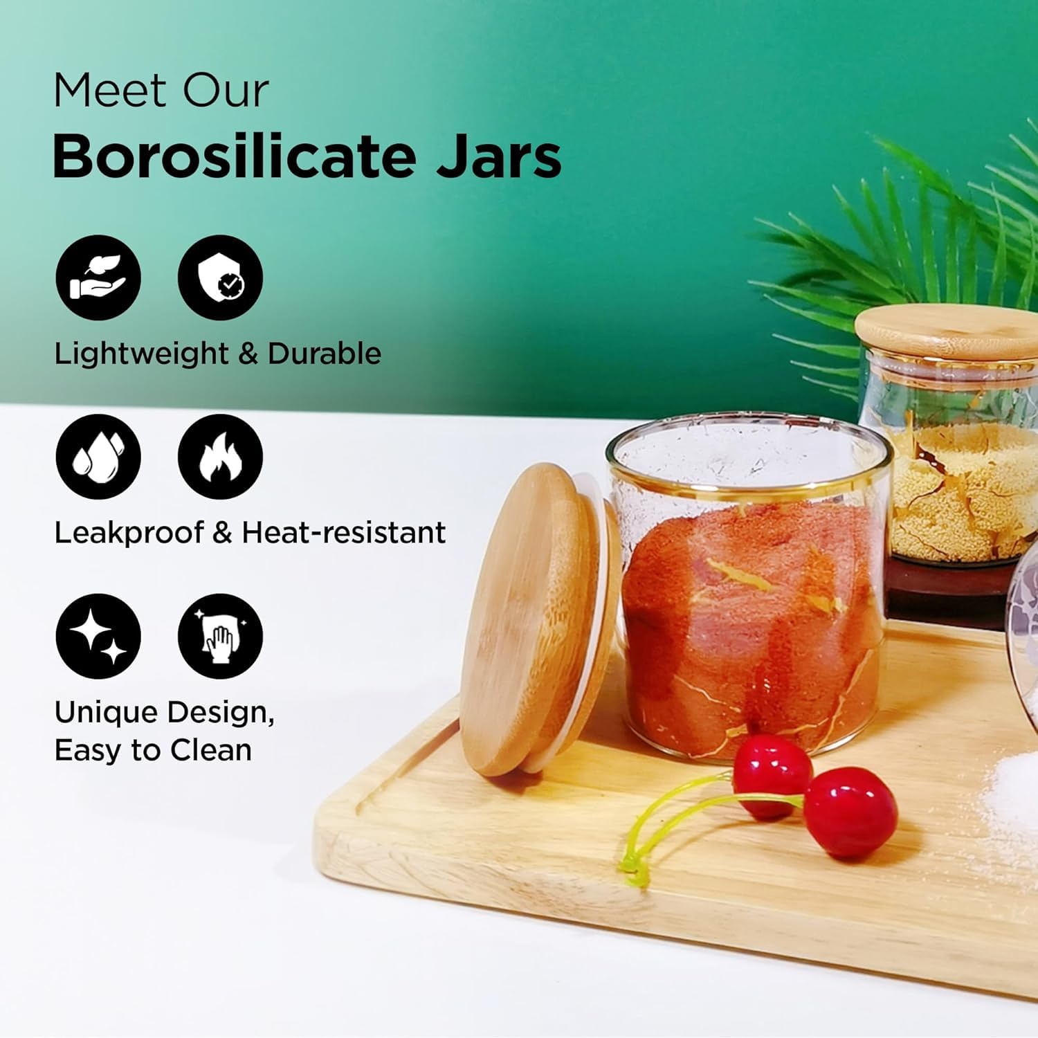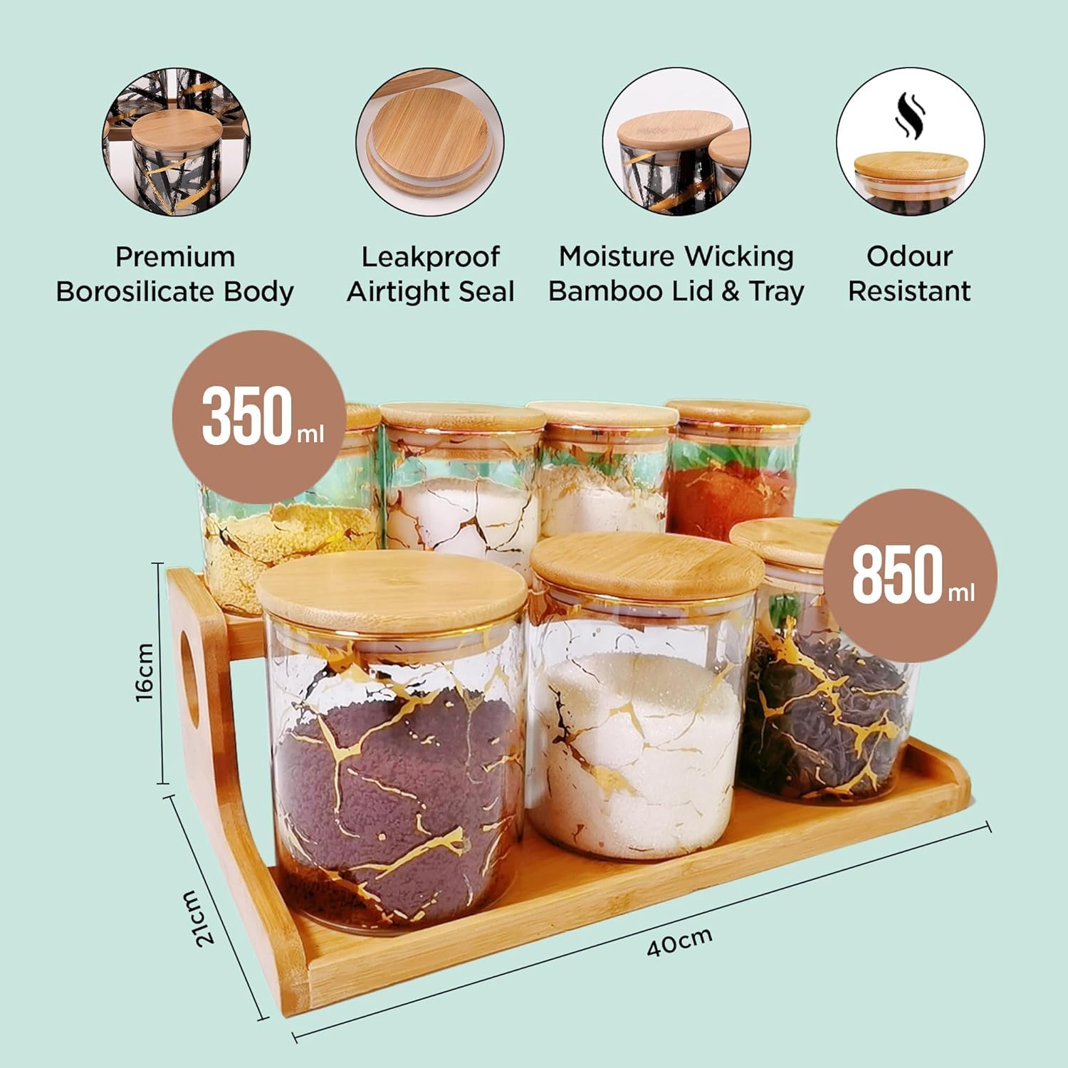 Declutter your pantry and embrace eco-chic style with Kuber Industries 's 7-piece borosilicate glass jar set! Crystal-clear jars showcase your ingredients, while secure bamboo lids lock in freshness. Say goodbye to plastic and hello to sustainable beauty – these jars are as functional as they are fashionable. Perfect sizes for storing all types of items (4 x 350ml, 3 x 850ml) conquer countertop chaos, while the sleek bamboo stand adds a touch of natural elegance. Kuber Industries 's jars are the perfect blend of modern convenience and eco-conscious living. Elevate your kitchen and your planet, one beautiful jar at a time!Detailed Specifications: