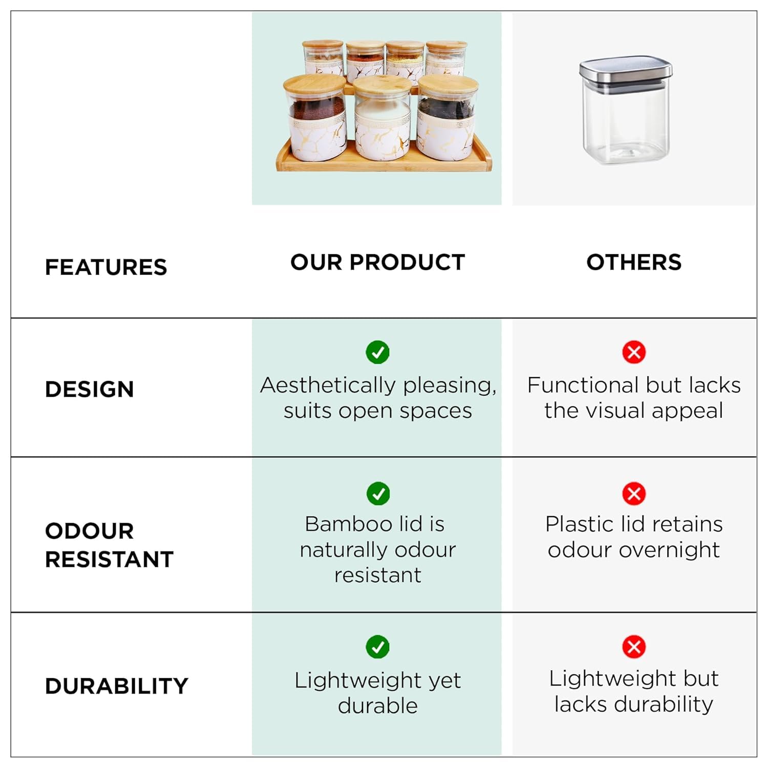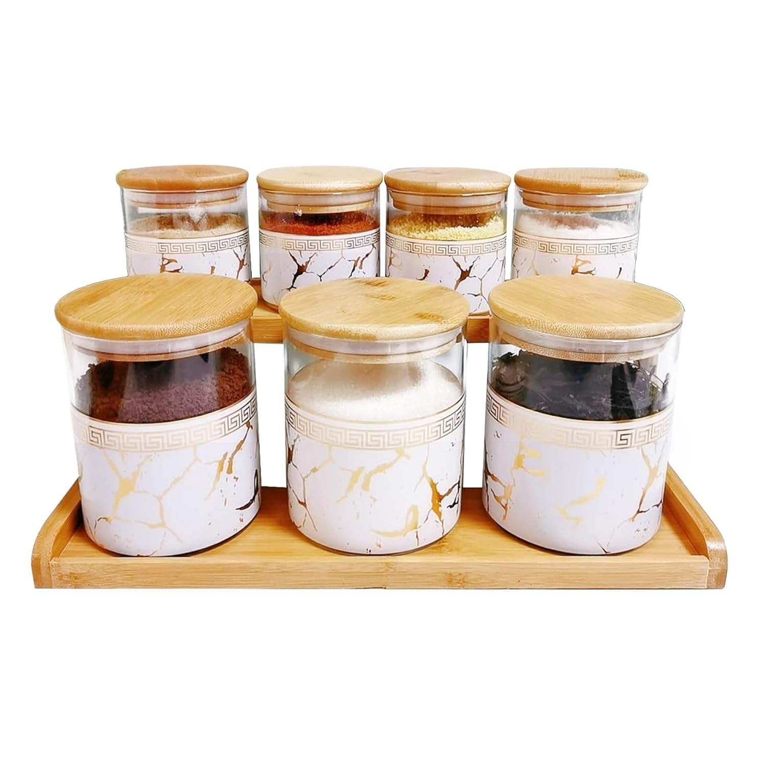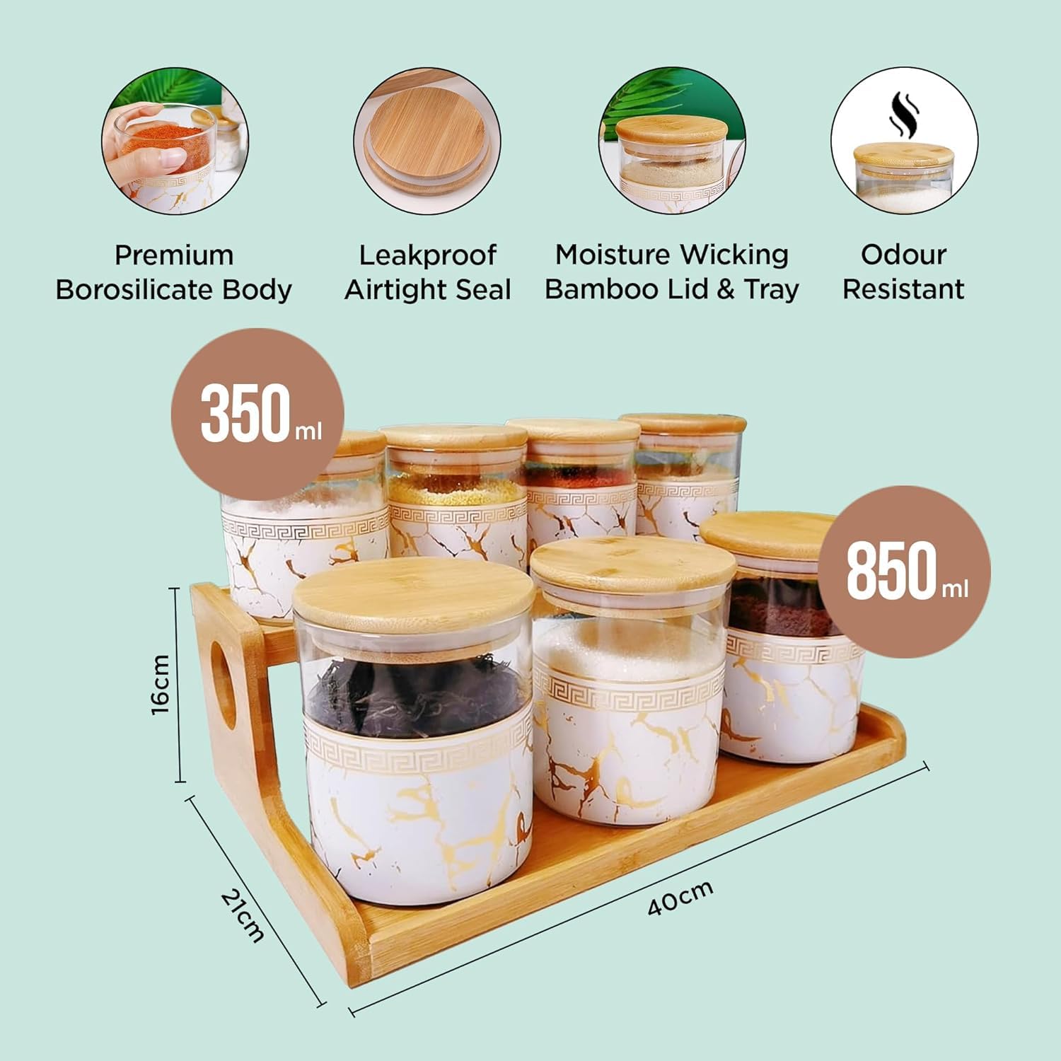 Declutter your pantry and embrace eco-chic style with Homestic 's 7-piece borosilicate glass jar set! Crystal-clear jars showcase your ingredients, while secure bamboo lids lock in freshness. Say goodbye to plastic and hello to sustainable beauty – these jars are as functional as they are fashionable. Perfect sizes for storing all types of items (4 x 350ml, 3 x 850ml) conquer countertop chaos, while the sleek bamboo stand adds a touch of natural elegance. Homestic 's jars are the perfect blend of modern convenience and eco-conscious living. Elevate your kitchen and your planet, one beautiful jar at a time!Detailed Specifications: