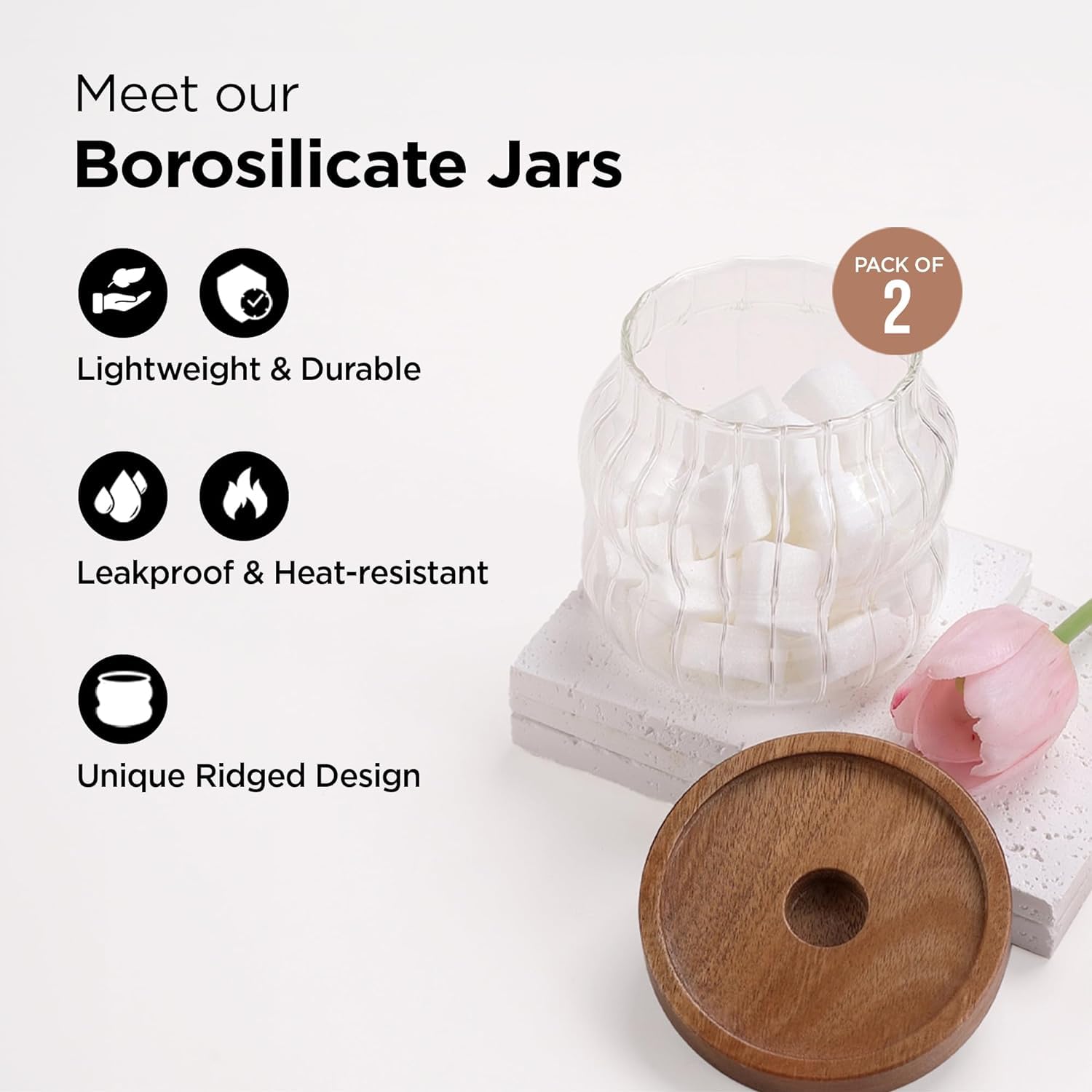 Introducing the Kuber Industries kitchen container set with acacia lid, the perfect solution for all your kitchen organization needs. Made from premium quality borosilicate glass, these airtight kitchen containers set with lid are durable and aesthetically pleasing, adding a touch of elegance to your kitchen decor. The airtight acacia lids with food-grade silicone rings ensure that your cookies, snacks, spices, tea, coffee, sugar, and dry fruits stay fresh for longer. The Kuber Industries kitchen and fridge organizer containers set with acacia lid comes in a pack of 2, each with a capacity of 400ml. The transparent design allows you to easily see the contents inside, making it convenient to find what you need at a glance. The wide mouth and versatile usage make these jars perfect for storing grains, pulses, spices, snacks, nuts, and more. Customers love the high quality and durable construction of these storage jars. The airtight lids keep moisture and dust out, ensuring that your food stays fresh longer. The printed lids and aesthetic look add a touch of style to your kitchen, while the sustainable materials used make them an eco-friendly choice. For those concerned about lid issues or seal/vacuum problems, rest assured that the Kuber Industries kitchen storage jars are designed to address these common issues. The airtight acacia lids with food-grade silicone rings create a secure seal, keeping your food fresh and free from contaminants. The premium quality borosilicate body is not only durable but also easy to clean, making these jars a practical and functional choice for everyday use. Whether you are a mother looking to organize your kitchen, a family in need of storage solutions, or a wife looking for the perfect gift set, the Kuber Industries kitchen storage jars and containers are sure to meet your needs. So why wait? Experience the convenience and elegance of Kuber Industries kitchen storage jars today.Detailed Specifications: