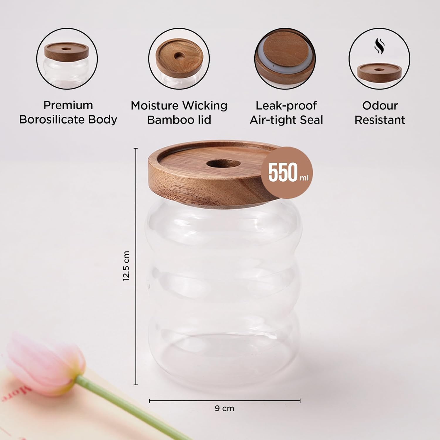 The Homestic Borosilicate Glass Jar is the perfect solution for storing your favorite foods and ingredients in style and sustainability. Crafted from high-quality borosilicate glass, this jar is exceptionally durable and heat-resistant. The airtight bamboo lid with a convenient metal loop ensures freshness and prevents spills. The jar's sleek design complements any décor, while its versatility allows it to be used for storing a wide range of items, from spices and tea to snacks and nuts.Detailed Specifications: