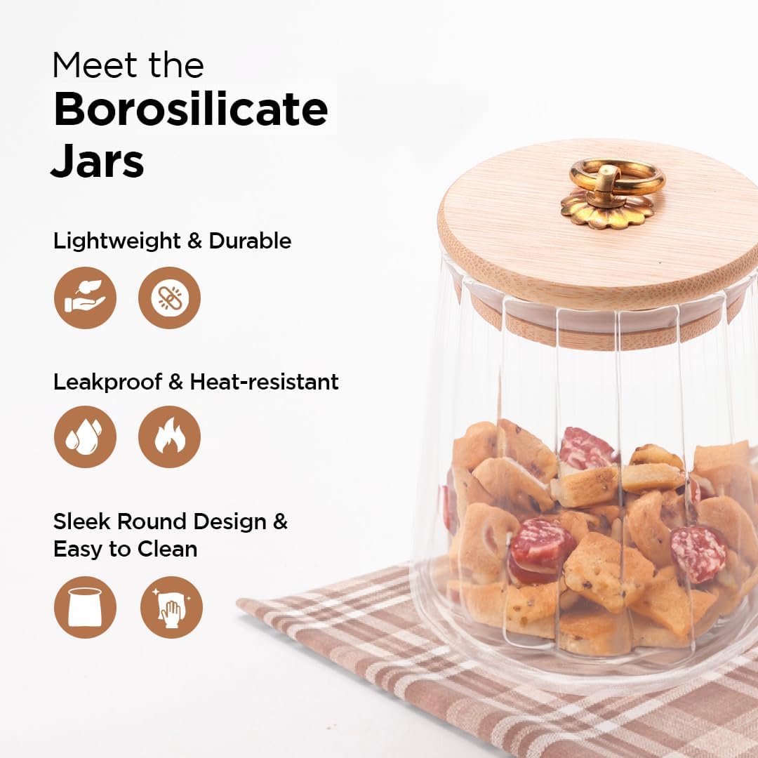 The Kuber Industries Borosilicate Glass Jar is the perfect solution for storing your favorite foods and ingredients in style and sustainability. Crafted from high-quality borosilicate glass, this jar is exceptionally durable and heat-resistant. The airtight bamboo lid with a convenient metal loop ensures freshness and prevents spills. The jar's sleek design complements any décor, while its versatility allows it to be used for storing a wide range of items, from spices and tea to snacks and nuts.Detailed Specifications: