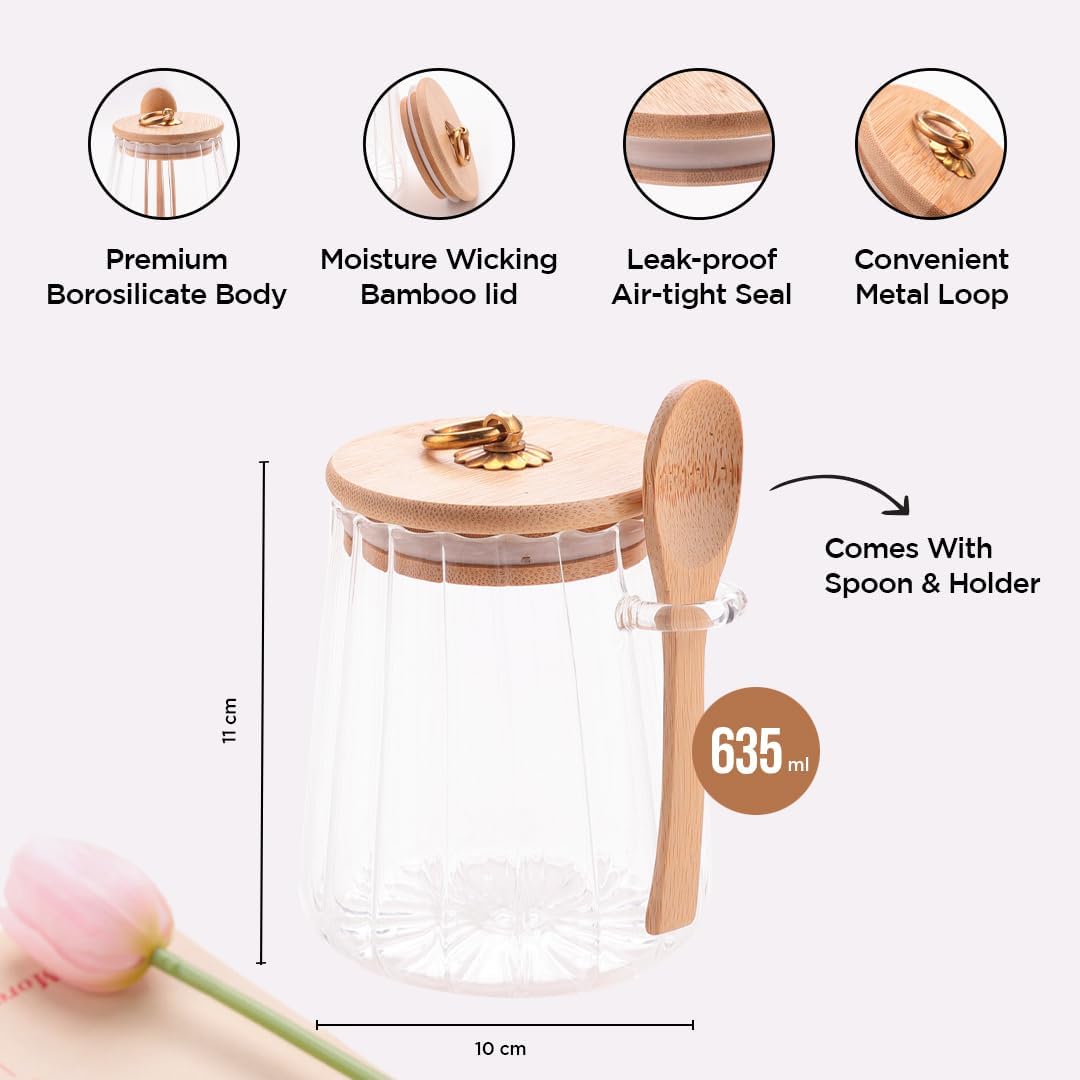 The Kuber Industries Borosilicate Glass Jar is the perfect solution for storing your favorite foods and ingredients in style and sustainability. Crafted from high-quality borosilicate glass, this jar is exceptionally durable and heat-resistant. The airtight bamboo lid with a convenient metal loop ensures freshness and prevents spills. The jar's sleek design complements any décor, while its versatility allows it to be used for storing a wide range of items, from spices and tea to snacks and nuts.Detailed Specifications: