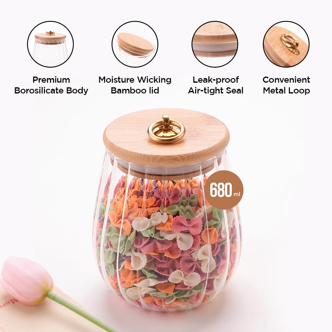 The Kuber Industries Borosilicate Glass Jar is the perfect solution for storing your favorite foods and ingredients in style and sustainability. Crafted from high-quality borosilicate glass, this jar is exceptionally durable and heat-resistant. The airtight bamboo lid with a convenient metal loop ensures freshness and prevents spills. The jar's sleek design complements any décor, while its versatility allows it to be used for storing a wide range of items, from spices and tea to snacks and nuts.Detailed Specifications: