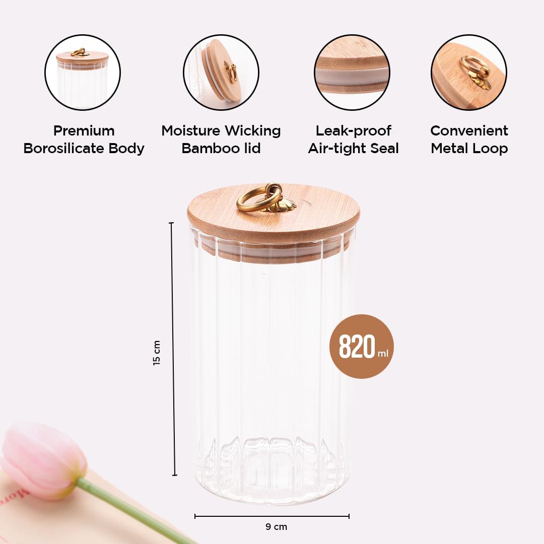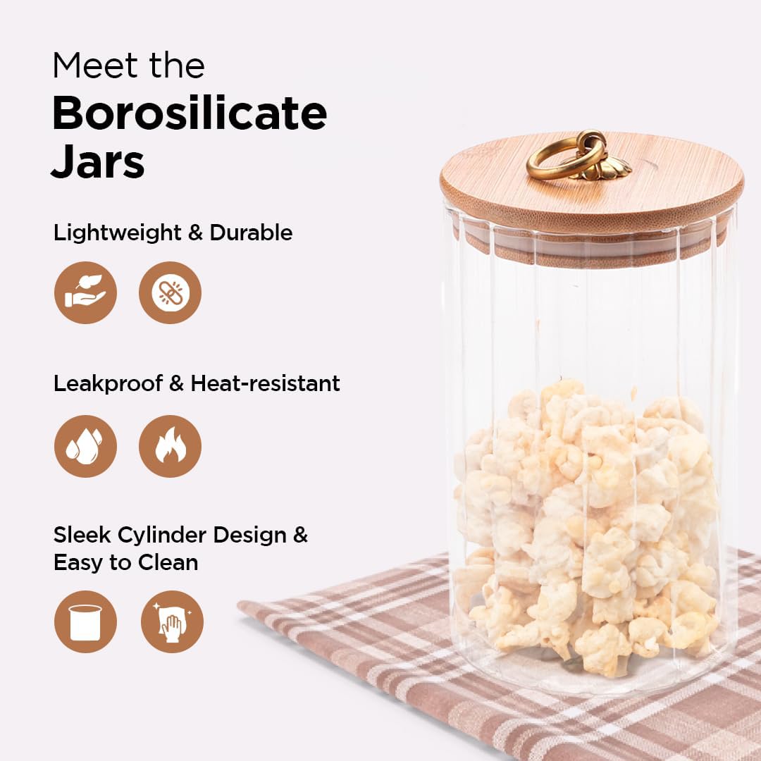 The Kuber Industries Borosilicate Glass Jar is the perfect solution for storing your favorite foods and ingredients in style and sustainability. Crafted from high-quality borosilicate glass, this jar is exceptionally durable and heat-resistant. The airtight bamboo lid with a convenient metal loop ensures freshness and prevents spills. The jar's sleek design complements any décor, while its versatility allows it to be used for storing a wide range of items, from spices and tea to snacks and nuts.Detailed Specifications: