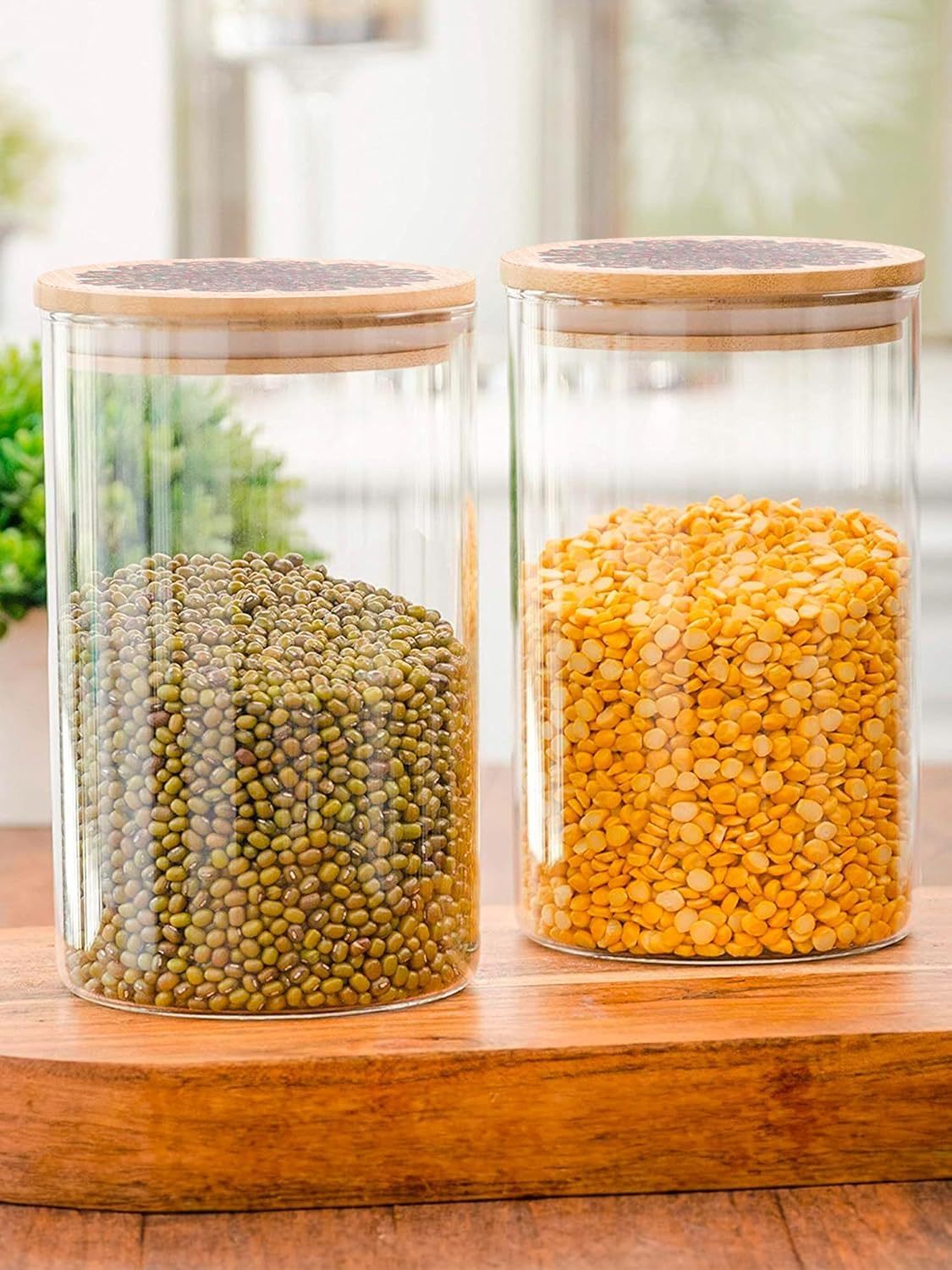 The Homestic Borosilicate Glass Jar is the perfect solution for storing your favorite foods and ingredients in style and sustainability. Crafted from high-quality borosilicate glass, this jar is exceptionally durable and heat-resistant. The airtight bamboo lid with a convenient metal loop ensures freshness and prevents spills. The jar's sleek design complements any décor, while its versatility allows it to be used for storing a wide range of items, from spices and tea to snacks and nuts.Detailed Specifications:
