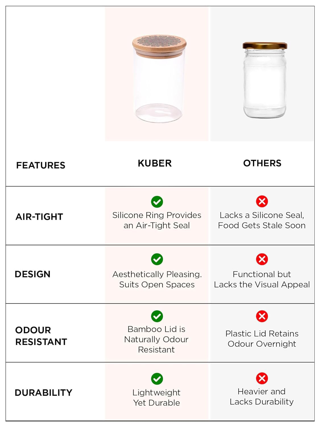 The Homestic Borosilicate Glass Jar is the perfect solution for storing your favorite foods and ingredients in style and sustainability. Crafted from high-quality borosilicate glass, this jar is exceptionally durable and heat-resistant. The airtight bamboo lid with a convenient metal loop ensures freshness and prevents spills. The jar's sleek design complements any décor, while its versatility allows it to be used for storing a wide range of items, from spices and tea to snacks and nuts.Detailed Specifications: