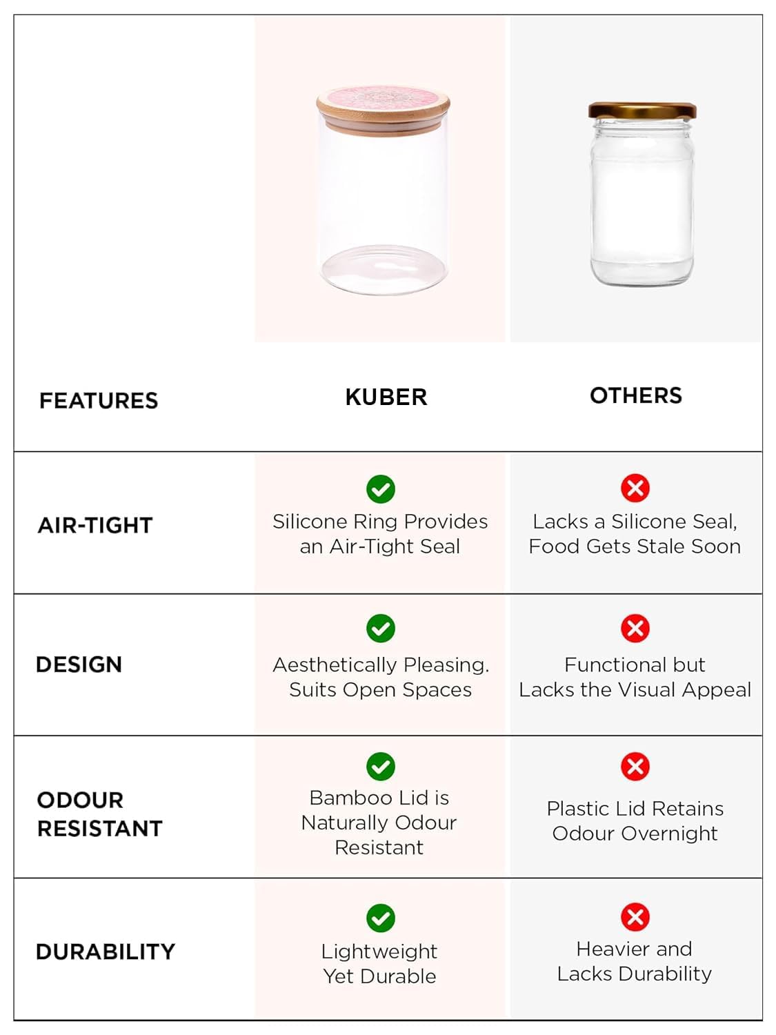 The Homestic Borosilicate Glass Jar is the perfect solution for storing your favorite foods and ingredients in style and sustainability. Crafted from high-quality borosilicate glass, this jar is exceptionally durable and heat-resistant. The airtight bamboo lid with a convenient metal loop ensures freshness and prevents spills. The jar's sleek design complements any décor, while its versatility allows it to be used for storing a wide range of items, from spices and tea to snacks and nuts.Detailed Specifications: