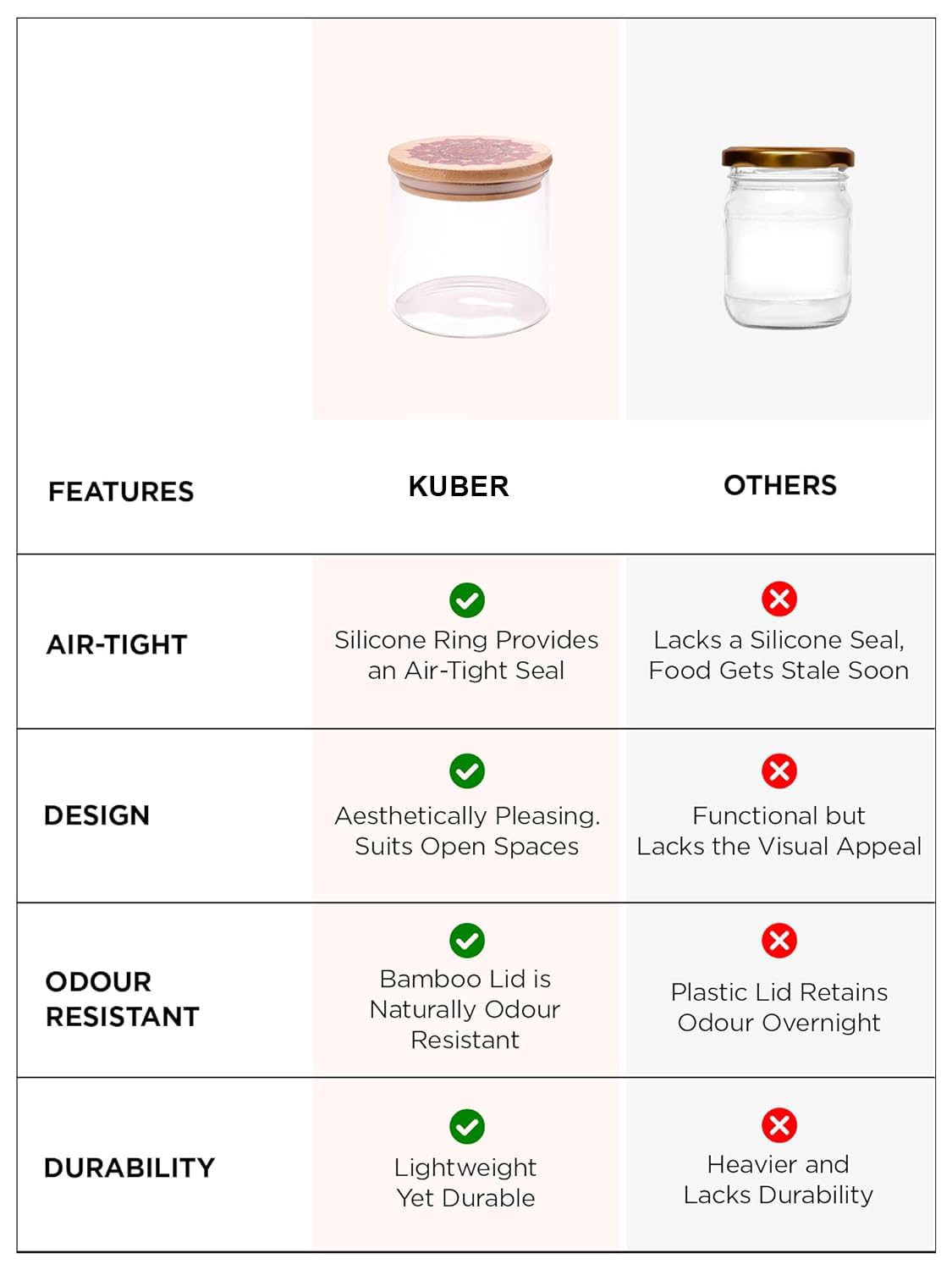 The Kuber Industries Borosilicate Glass Jar is the perfect solution for storing your favorite foods and ingredients in style and sustainability. Crafted from high-quality borosilicate glass, this jar is exceptionally durable and heat-resistant. The airtight bamboo lid with a convenient metal loop ensures freshness and prevents spills. The jar's sleek design complements any décor, while its versatility allows it to be used for storing a wide range of items, from spices and tea to snacks and nuts.Detailed Specifications: