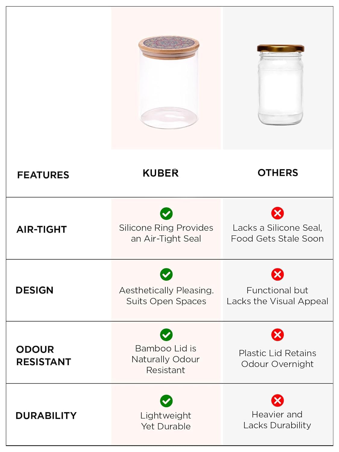 The Kuber Industries Borosilicate Glass Jar is the perfect solution for storing your favorite foods and ingredients in style and sustainability. Crafted from high-quality borosilicate glass, this jar is exceptionally durable and heat-resistant. The airtight bamboo lid with a convenient metal loop ensures freshness and prevents spills. The jar's sleek design complements any décor, while its versatility allows it to be used for storing a wide range of items, from spices and tea to snacks and nuts.Detailed Specifications: