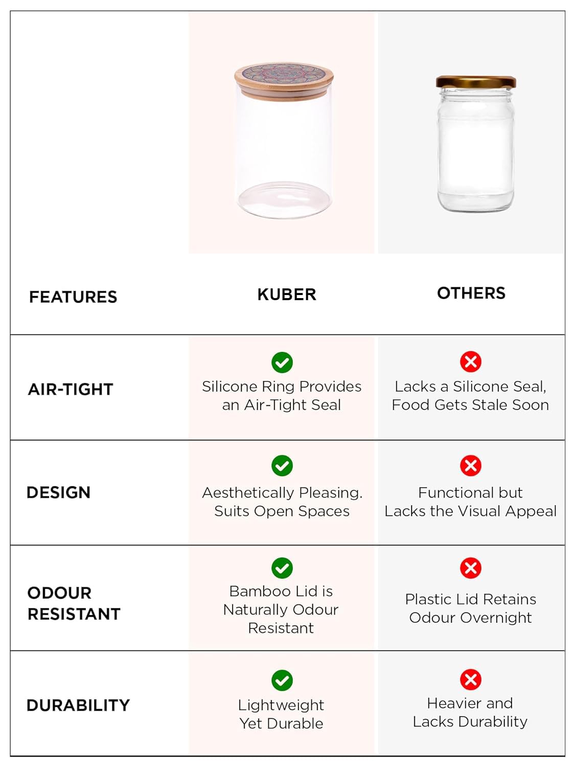 The Kuber Industries Borosilicate Glass Jar is the perfect solution for storing your favorite foods and ingredients in style and sustainability. Crafted from high-quality borosilicate glass, this jar is exceptionally durable and heat-resistant. The airtight bamboo lid with a convenient metal loop ensures freshness and prevents spills. The jar's sleek design complements any décor, while its versatility allows it to be used for storing a wide range of items, from spices and tea to snacks and nuts.Detailed Specifications: