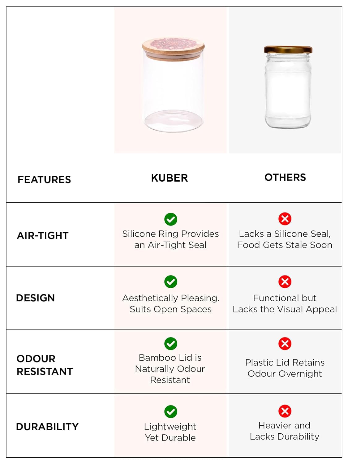 The Kuber Industries Borosilicate Glass Jar is the perfect solution for storing your favorite foods and ingredients in style and sustainability. Crafted from high-quality borosilicate glass, this jar is exceptionally durable and heat-resistant. The airtight bamboo lid with a convenient metal loop ensures freshness and prevents spills. The jar's sleek design complements any décor, while its versatility allows it to be used for storing a wide range of items, from spices and tea to snacks and nuts.Detailed Specifications:
