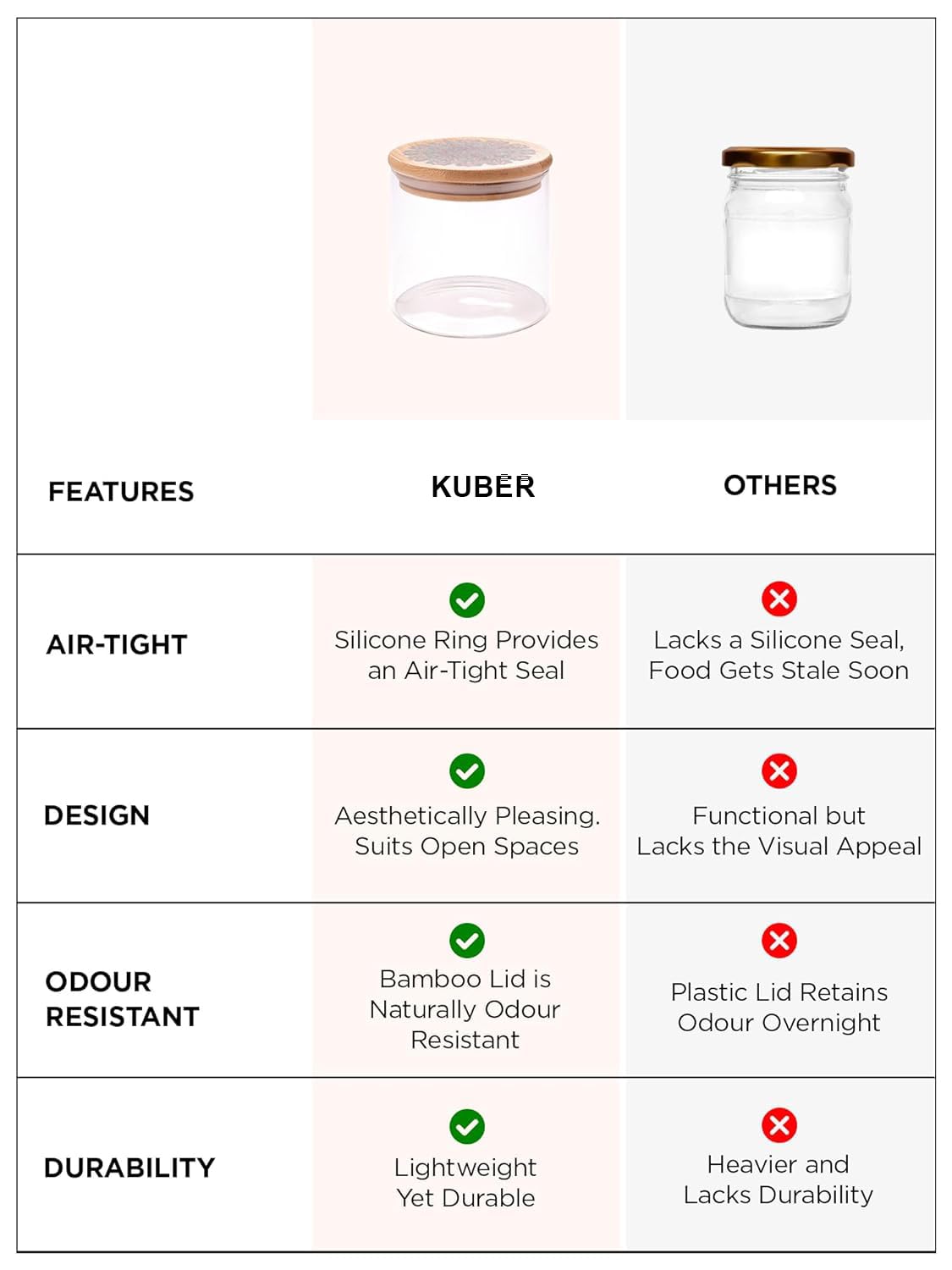 The Homestic Borosilicate Glass Jar is the perfect solution for storing your favorite foods and ingredients in style and sustainability. Crafted from high-quality borosilicate glass, this jar is exceptionally durable and heat-resistant. The airtight bamboo lid with a convenient metal loop ensures freshness and prevents spills. The jar's sleek design complements any décor, while its versatility allows it to be used for storing a wide range of items, from spices and tea to snacks and nuts.Detailed Specifications: