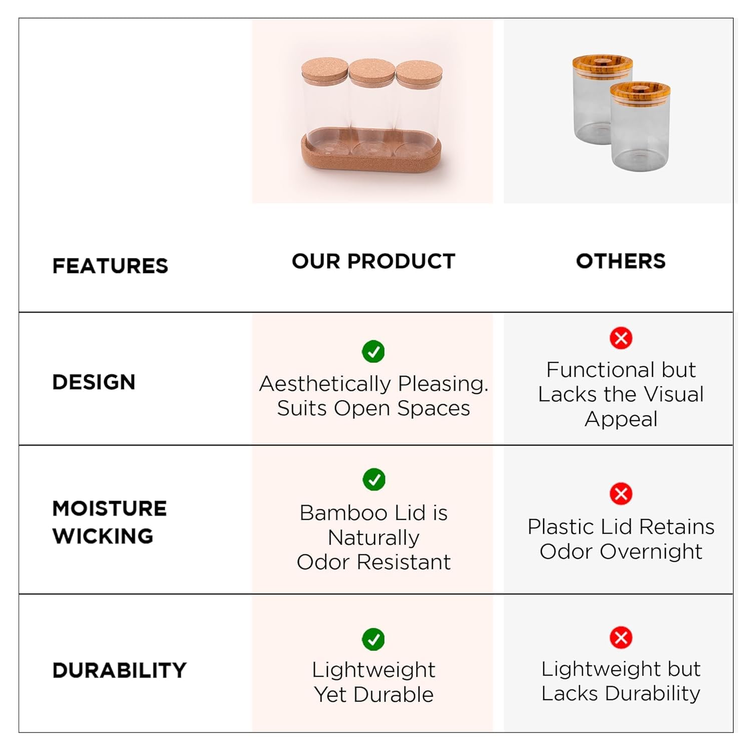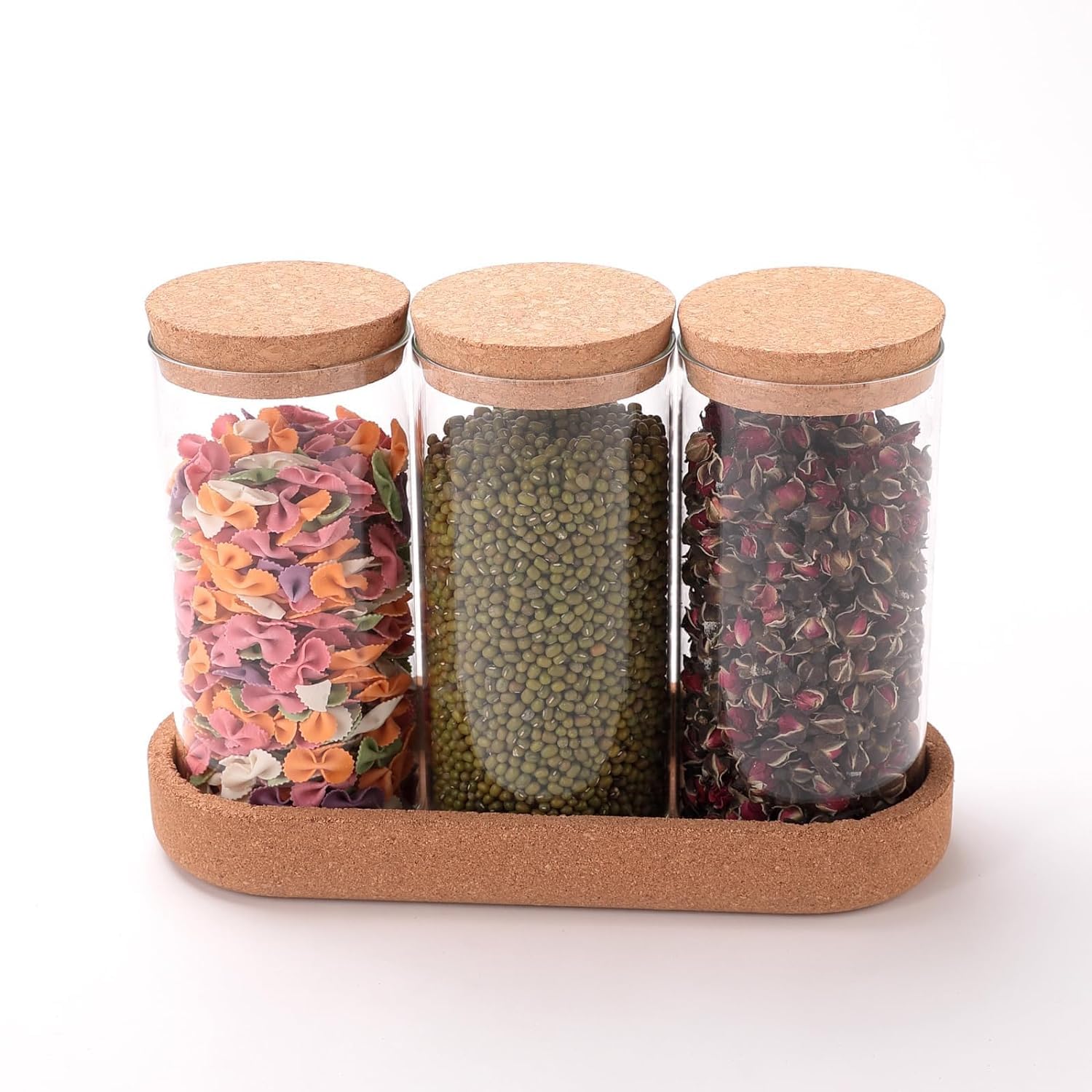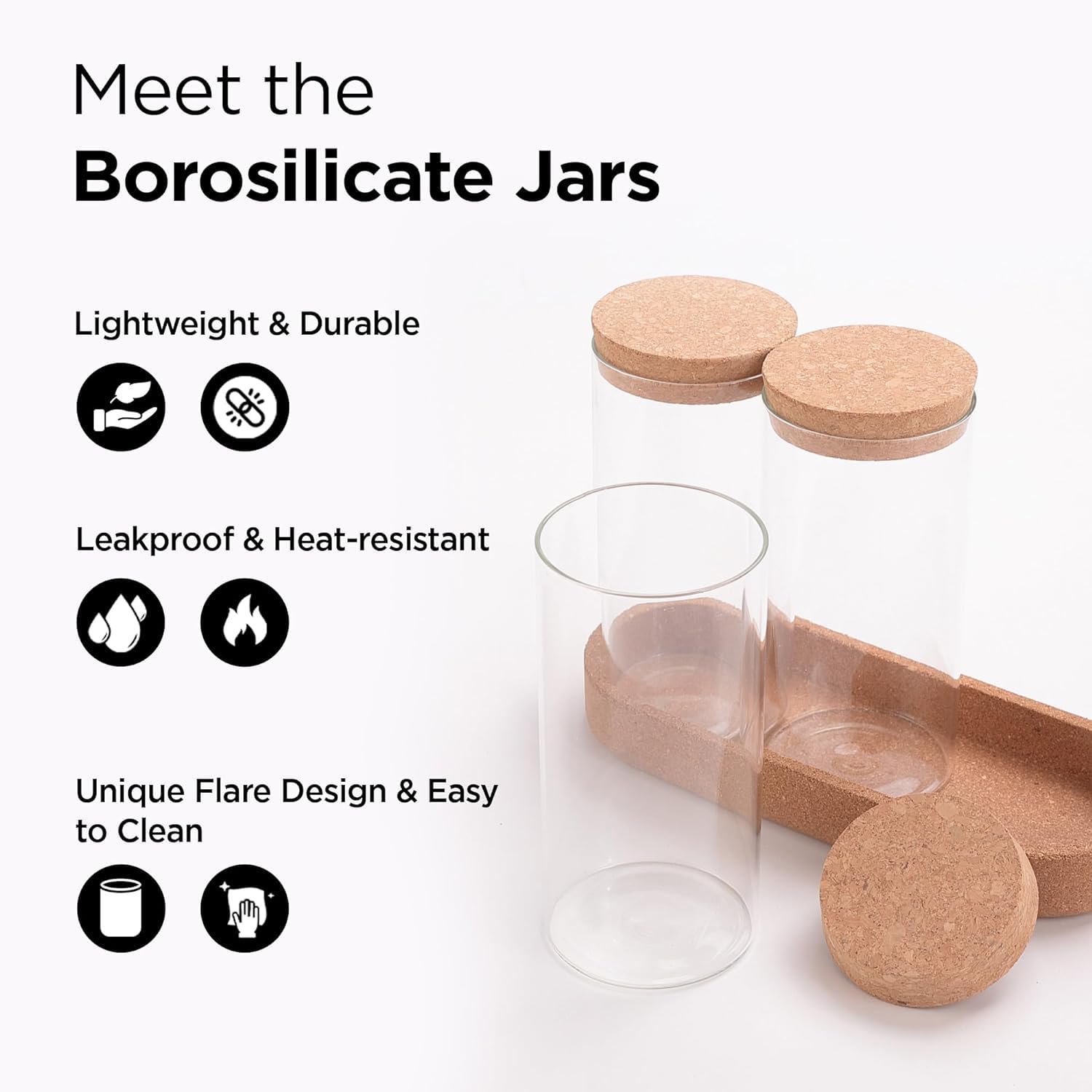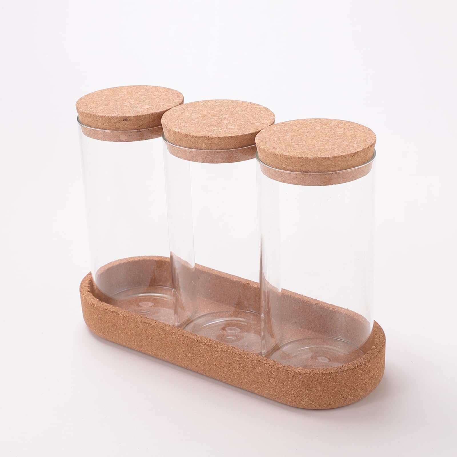 Welcome to the world of Homestic kitchen storage jars and containers, where premium quality meets practical design! Our pack of 3 borosilicate glass jars with cork lids and cork trays is a must-have for every kitchen. Crafted with a wide mouth for easy access and a large capacity of 700ml each, our airtight glass containers with lid are perfect for storing cookies, snacks, spices, tea, coffee, sugar, and dry fruits. Whether you're organizing your pantry or gifting to a loved one, these transparent kitchen containers are an ideal choice. The borosilicate body is not only temperature-resistant but also durable, ensuring long-lasting usage. The airtight cork lid, along with the cork tray, keeps your food fresh and secure, while the leakproof design prevents spills and messes. Our Homestic Kitchen containers set are designed to cater to the multipurpose needs of mothers, families, and wives who appreciate high-quality, aesthetically pleasing, and durable kitchen organization items. The pack of 3 jars comes in a classic style, making it a versatile addition to any kitchen. With a focus on quality, our transparent containers are a practical solution for everyday use. Say goodbye to lid issues, seal/vacuum problems, and concerns about quality/craftsmanship with Homestic kitchen organization items and storage containers. Whether you're storing grains, pulses, spices, or gifting to a loved one, our glass jars with cork lids are a convenient and stylish choice. Experience the convenience of using Bpa Free, food-grade, washable, and airtight containers that elevate your kitchen storage game. Choose Homestic for kitchen storage solutions that exceed customer expectations and redefine your kitchen organization experience. Elevate your pantry with Homestic glass containers and enjoy hassle-free storage for all your favorite food items.Detailed Specifications:
