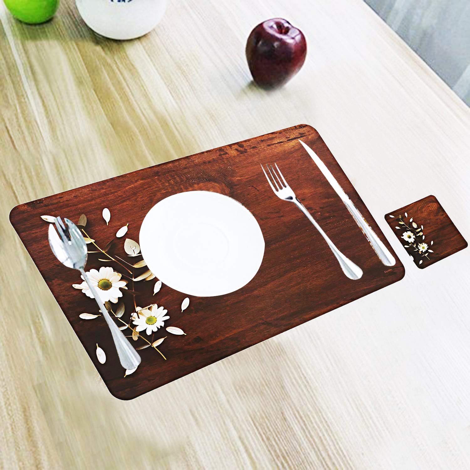 ENHANCE YOUR HOMEFashionable placemat & tea coaster set would be a perfect decoration and life quality of your home, dining hall, kitchen, hotel and business office. Top-grade exquisite placemats would be the best decoration and protection to your tables. | 100%WaterproofThe placemats & tea coaster are made of PVC, just using the wet cloth or towel to wipe off when the table mats hava some liquids in it, or go head to wash it after you finished a BBQ or meal time. | WASHABLEA damp cloth can directly wipe off the food residue left on the placemat. If it is a sauce-like stain, please rinse with water or clean the gap of the placemat with brush,No machine wash.It will dry quickly because of the non-absorbent material. | HEAT RESISTANCEThe placemat can withstand the temperature well. Using our placemat can protect your table well, and there is no need to worry about the sliding of the placemat, because our newly designed texture can play Good anti-slip effect. |