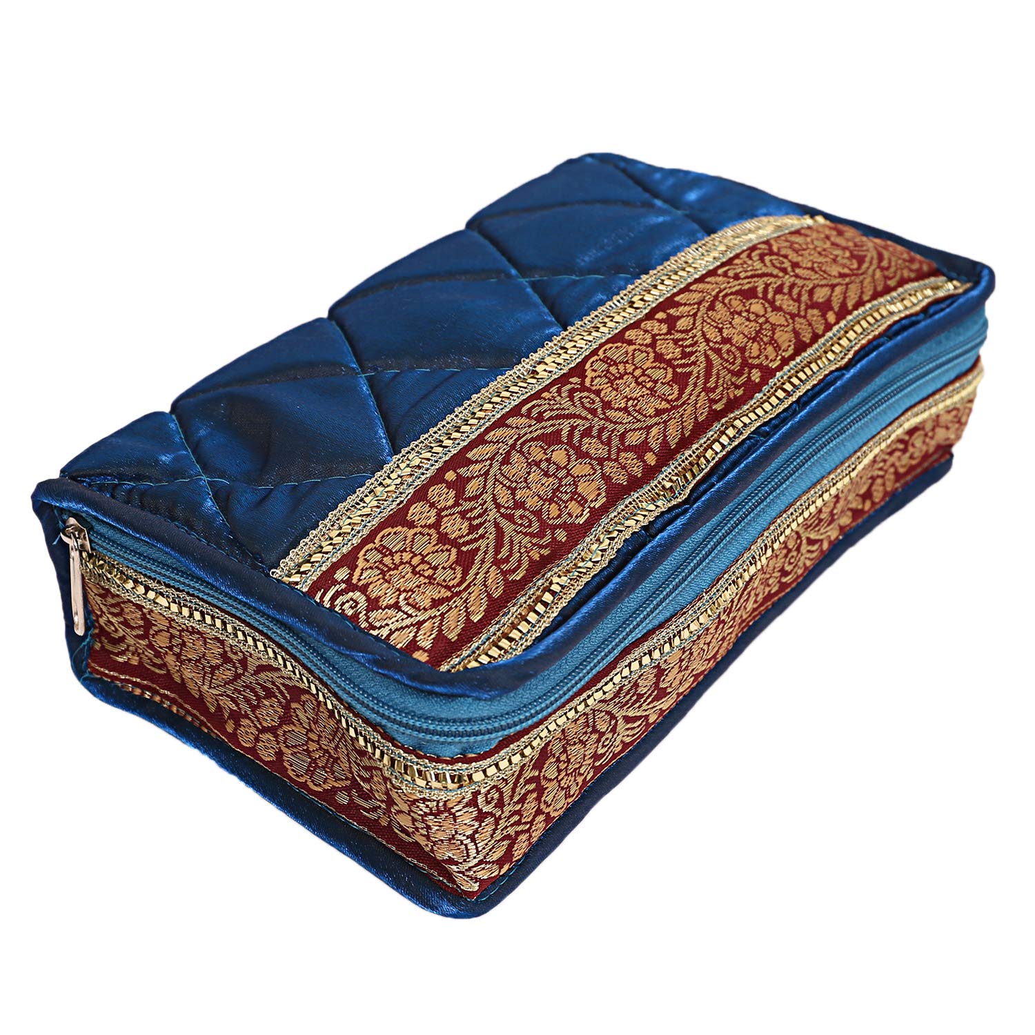 Jewellery box in heavy cotton material. 2 large and 4 small pockets are there in large box with zip closers. This is an exclusive item in which you can keep all jewellery. Kuber Industries brings products for every woman who dreams of being unique and stylish. It offers incredible range of handbags and jewellery boxes for women. Their products are incomparable in terms of quality.