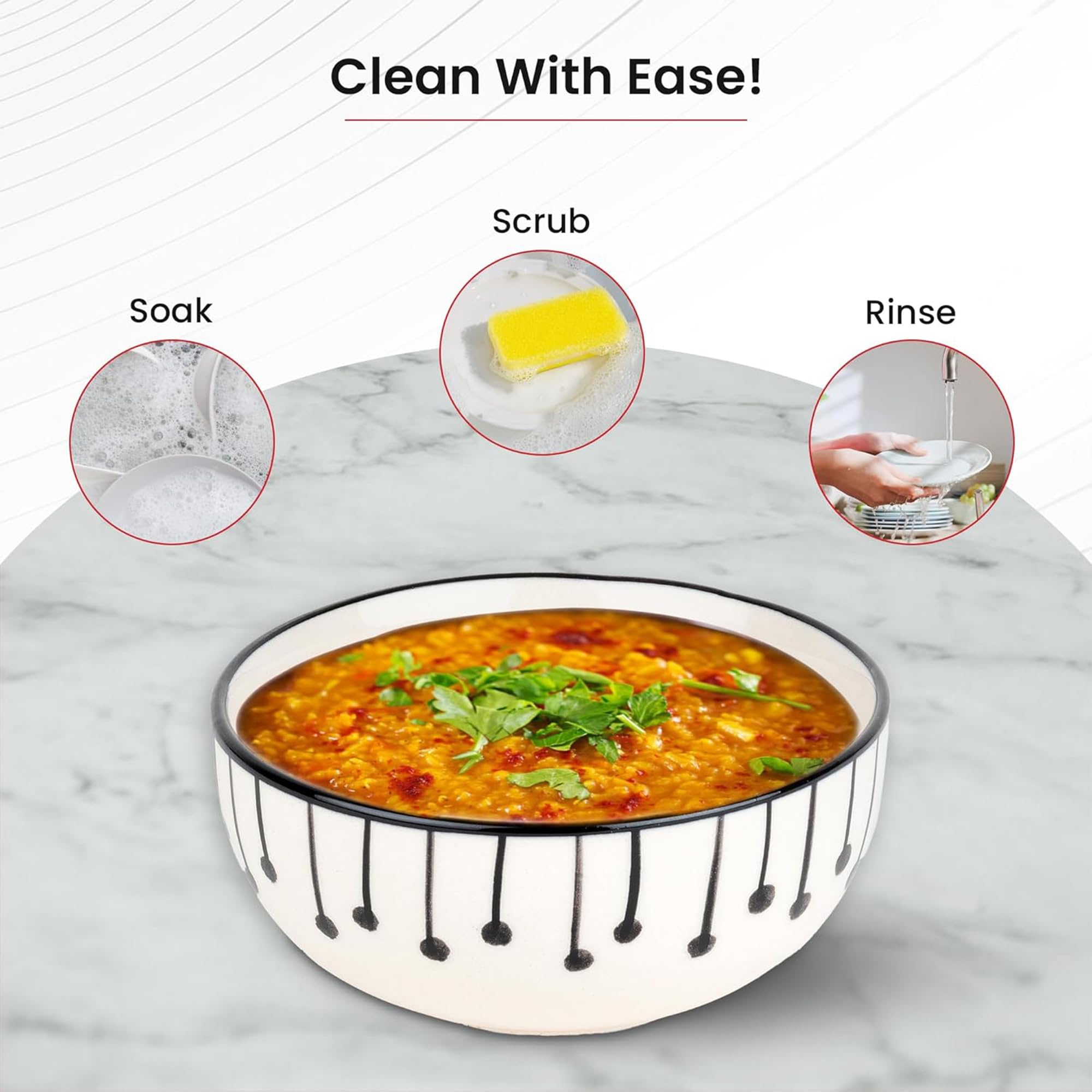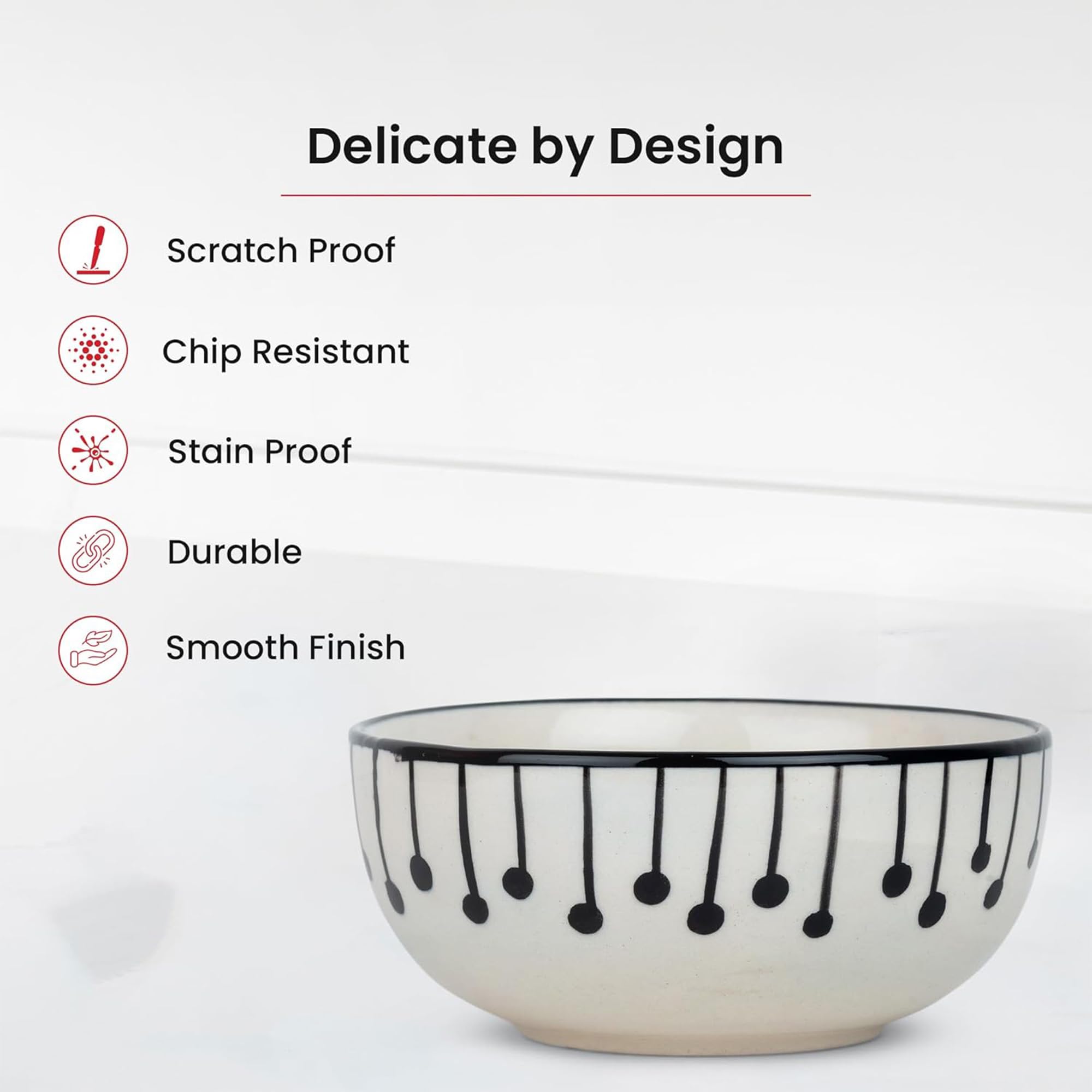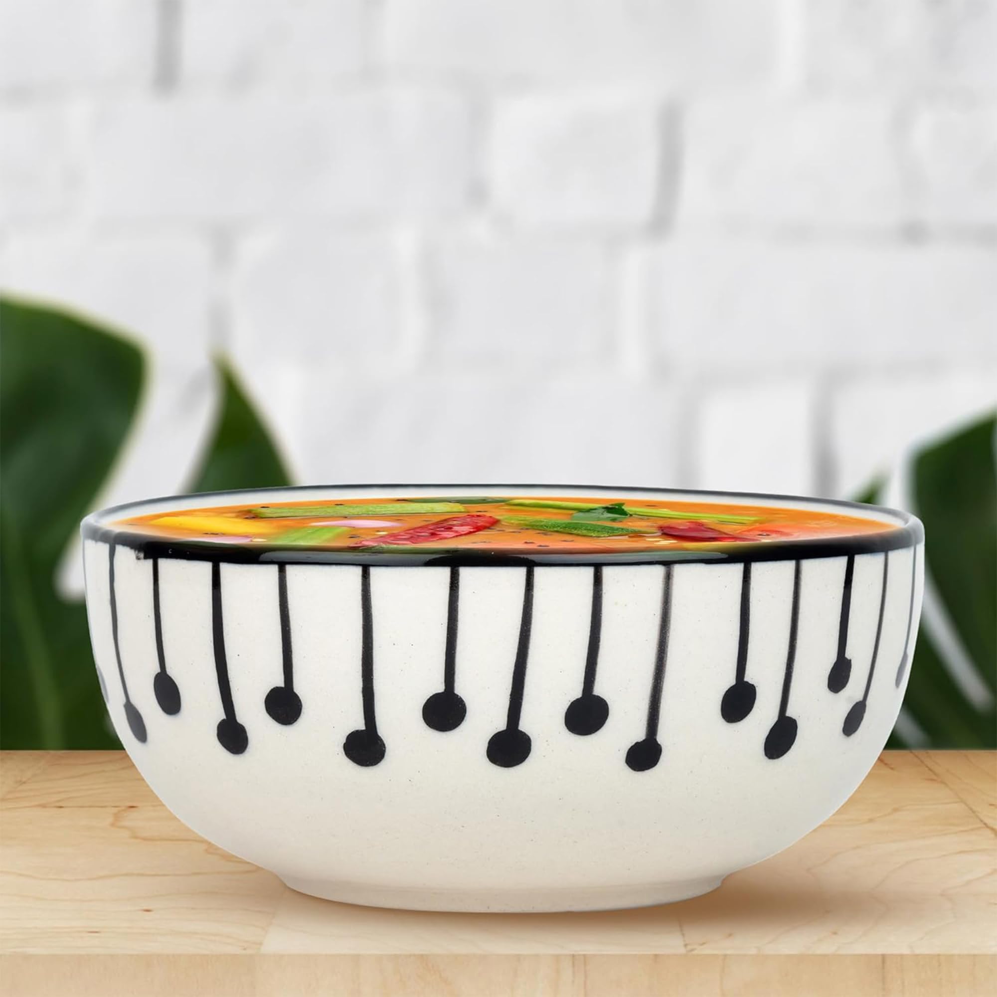 This food bowl for human is designed for multipurpose use. You can use it as a salad bowl which makes sure you enjoy fresh meals. Our katori is aesthetic and adds charm to your table. It is a desert bowl that brings joy to your treats. The hand painted print gives it a unique look. Microwave and dishwasher safe because we know convenience matters. This bowl is perfect for any occasion.Detailed Specifications: