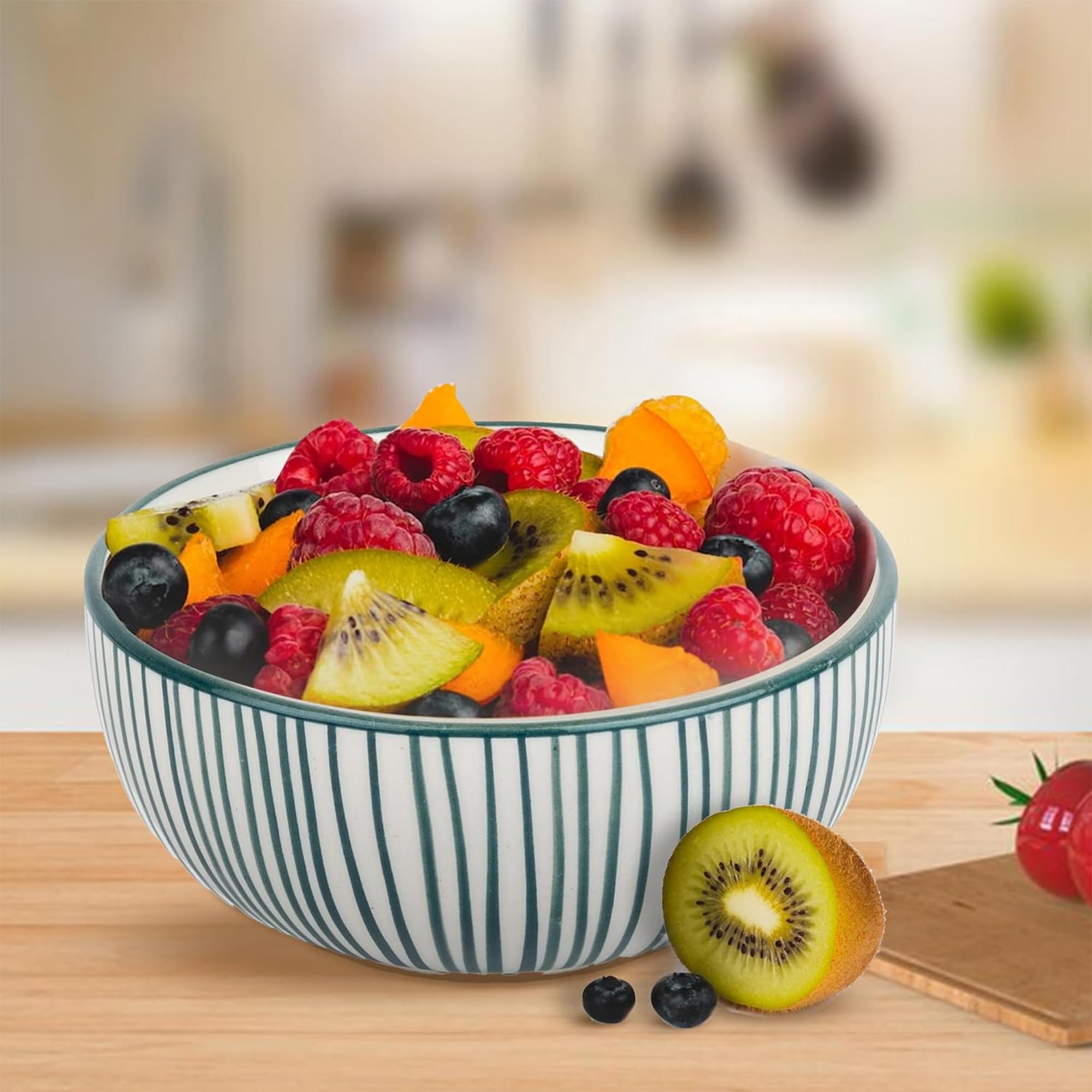 • ✅ Package Contains - (Set of 1) Bowls | Color - Green Lining Print - White | Material - Ceramic | Product Dimensions - 12.7X12.7X8.89CM