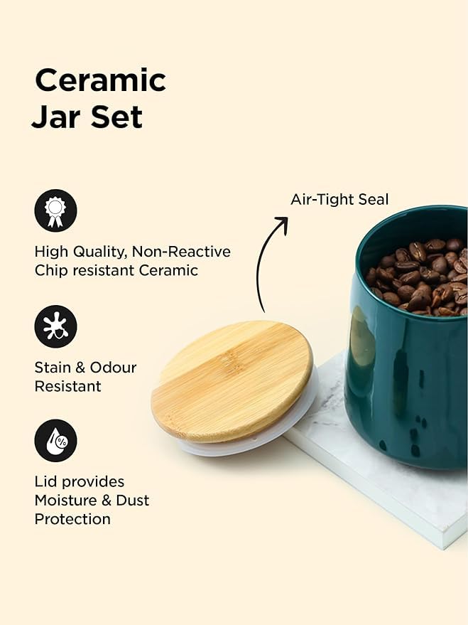 Homestic Crafted essentials merging style with function. Our range, from storage to decor, embodies innovation and quality. This ceramic jar is a versatile and charming addition to any kitchen. Made with care and attention, it's perfect for storing various dry goods like spices, coffee, or snacks. Its classic design adds a touch of elegance to your countertop or pantry shelves. With an airtight seal, it keeps contents fresh and flavorful for longer. Easy to clean and durable, this jar is both practical and decorative, making it a lovely choice for organizing and enhancing your kitchen space.Detailed Specifications: