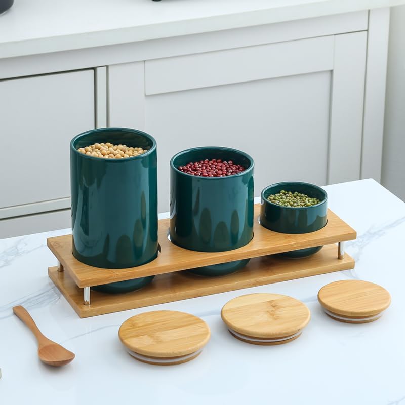 Kuber Industries Crafted essentials merging style with function. Our range, from storage to decor, embodies innovation and quality. This ceramic jar is a versatile and charming addition to any kitchen. Made with care and attention, it's perfect for storing various dry goods like spices, coffee, or snacks. Its classic design adds a touch of elegance to your countertop or pantry shelves. With an airtight seal, it keeps contents fresh and flavorful for longer. Easy to clean and durable, this jar is both practical and decorative, making it a lovely choice for organizing and enhancing your kitchen space.Detailed Specifications: