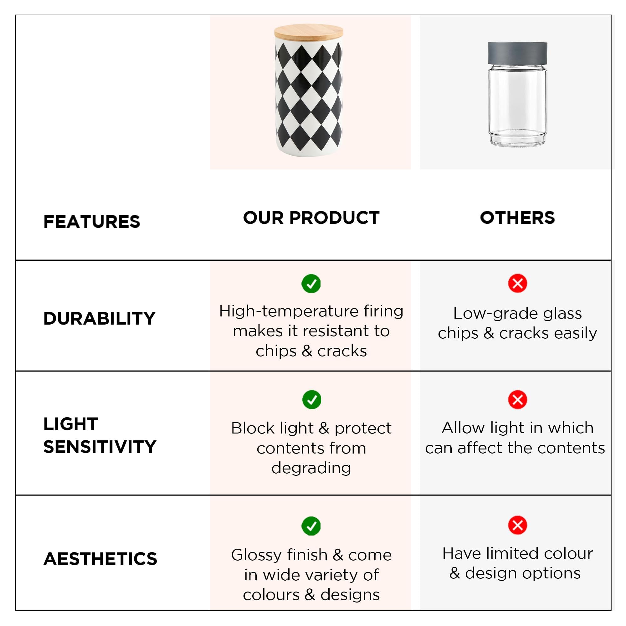 Introducing the Kuber Industries Ceramic Jar with Bamboo Lid, a versatile and stylish addition to your kitchen storage collection. Crafted from high-quality ceramic material, this jar is not only durable but also aesthetically pleasing with a glossy black and white finish. The bamboo lid features a silicone ring for a tight seal to keep your food items fresh for longer. With a capacity of 1000ml, this multipurpose airtight container for kitchen storage is perfect for storing a variety of items such as tea, coffee, snacks, sugar, salt, pulses, grains, dry fruits, and spices. The wide mouth design allows for easy access to your stored items, making it convenient for everyday use. Ideal for mothers, families, and wives, this Kuber Industries ceramic jar is a must-have for any kitchen. Whether you use it in your kitchen cabinets, pantry, or as a gifting option, this container is sure to meet your storage needs. Customer satisfaction is our top priority, which is why we have addressed common concerns such as lid issues, seal/vacuum problems, and quality/craftsmanship worries. Rest assured, our Ceramic Jar with Bamboo Lid is designed to overcome these shortcomings and provide you with a seamless storage experience. In addition to its functional benefits, customers appreciate the recommendation, aesthetic appeal, value for money, quality, and price of this Kuber Industries jar. The BPA-free, reusable, and dust-resistant features ensure that you are investing in a safe and sustainable storage solution. Experience the convenience and practicality of the Kuber Industries Ceramic Jar with Bamboo Lid for all your kitchen storage needs. Upgrade your kitchen organization with this stylish and functional container today.Detailed Specifications: