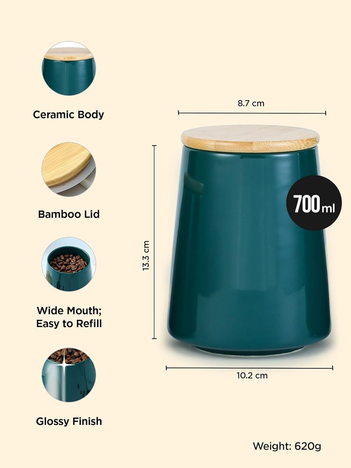 Say goodbye to cluttered cupboards and hello to organized bliss with Homestic Ceramic Jars with Bamboo Lids! These stylish and functional jar provide airtight storage for your favorite dry food items: flour, sugar, coffee, tea, spices, snacks, and more. Made with high-quality ceramic and natural bamboo lids, these jars boast superior durability and eco-friendliness. The tight seals keep moisture and dust out, ensuring your food stays fresh and flavorful for longer. Declutter your pantry and organize your countertops.Detailed Specifications: