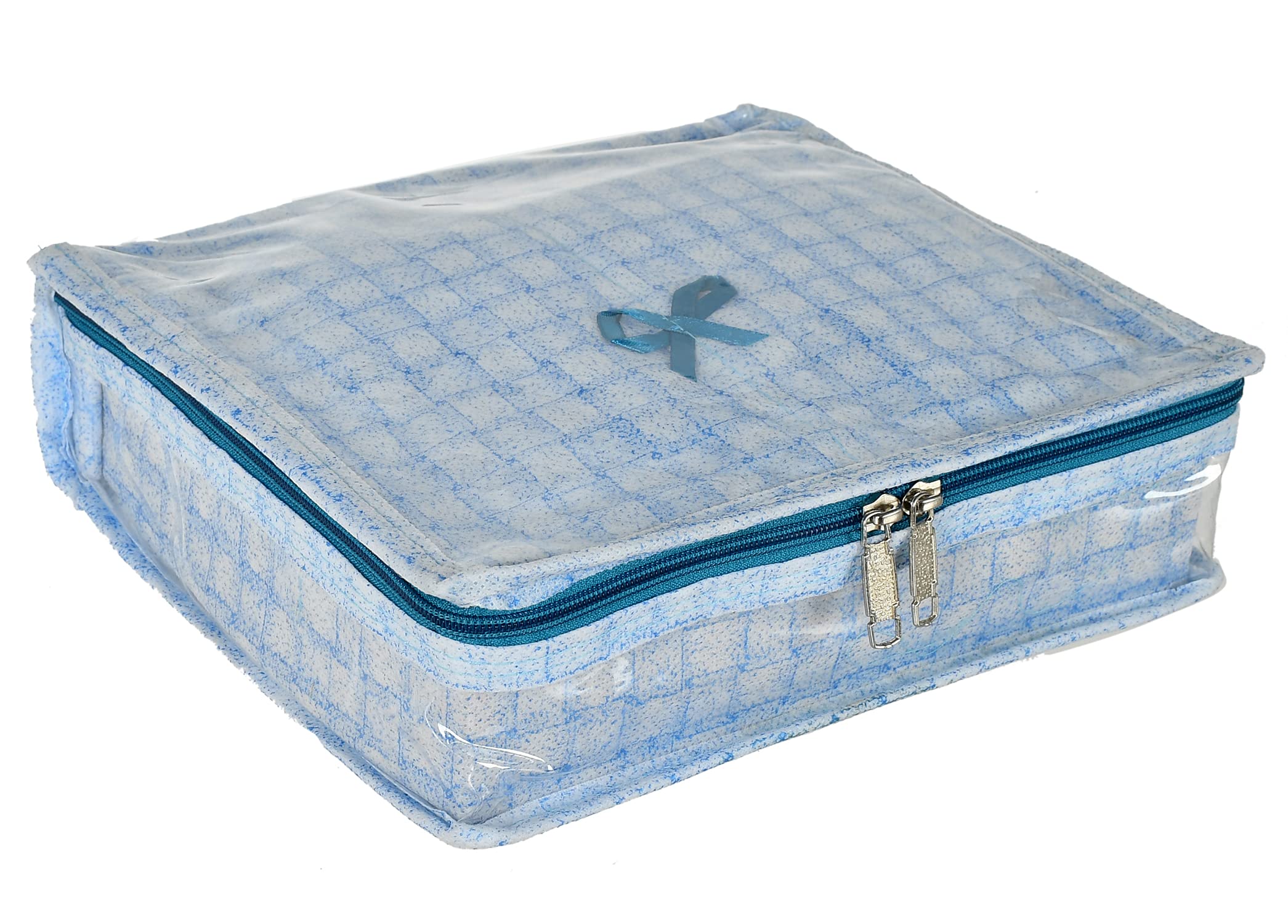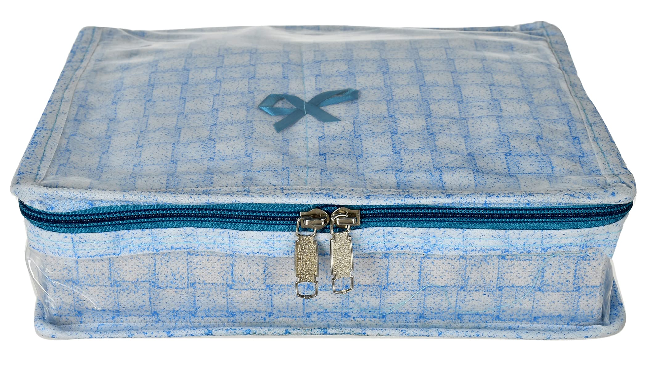 Kuber Industries Check Design Laminated PVC Jewellery Box/Organizer with 4 Transparent Pouch & 1 Bangle/Watch Rod (Blue)-HS_38_LUGGAGE21274Detailed Specifications: