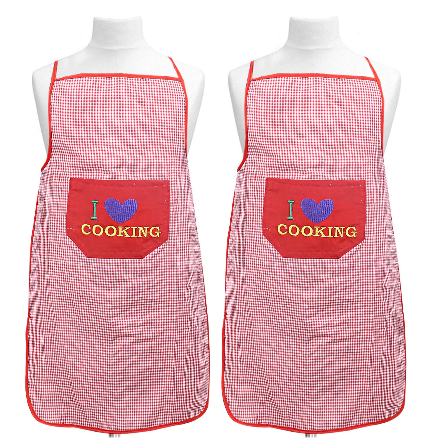 Kuber Industries apron is water proof, helps you cook, wash or do any kitchen work without stressing that your clothes will get damaged. Covering from chest to knee provides great coverage and protection against kitchen grease, spills and food stains. It is the primary choice for ordinary kitchen and family gatherings. No more worrying about getting your clothes dirty. It can be used for cooking at schools, restaurants, catering business, hotels, food handling or production kitchen, banquet, catering business, etc place. The aprons are very easy to care for. They are machine washable and recommended to be washed without the use of harsh bleach and detergents.Made of high quality pure cotton material with durable Stitching that makes it long lasting.This has a thin plastic layer which makes it waterproof and it also has a front pocket. This protects your clothes from food stains, splatters and kitchen grease. This kitchen linen ensures your clothes stay clean while you chop, dice, fry and more.
