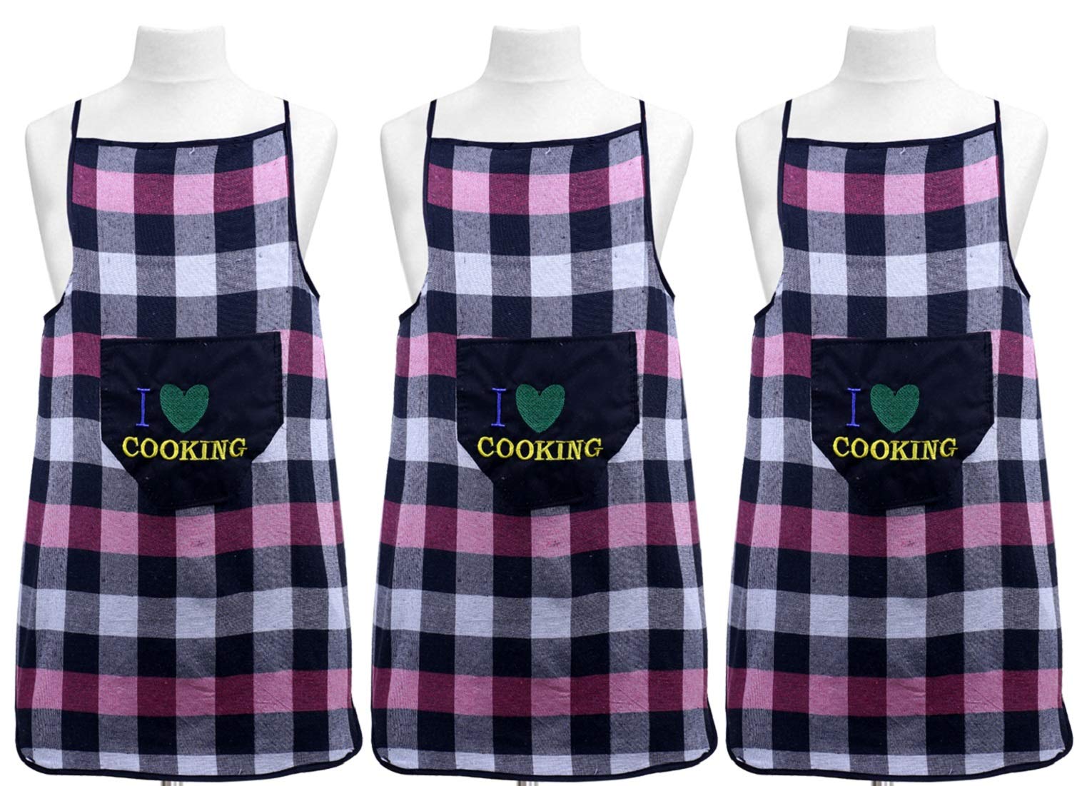GREAT DESIGNThere are several stylish aprons that one can buy online for daily use. From checks to floral, there is no limit to the designs available for aprons. Solid Designs & color make you look elegant while you cook your favorite dish. | WATERPROOFOur Apron built in cotton fabric with an outer water proof layer, which helps you cook, wash or do any kitchen work without stressing that your clothes will get damaged. This oil and waterproof apron are crafted from a PVC fabric and can be wipe-cleaned. | EXTRA POCKETThe apron is stitched with a large pocket at the front that can be used for holding phones and other important items. Plus, it can be used to keep smartphones, cooking spoons and other essentials that need quick access. | SAFE & CLEAN COOKINGCovering from chest to knee provides great coverage and protection against kitchen grease, spills and food stains. It is the primary choice for ordinary kitchen and family gatherings. No more worrying about getting your clothes dirty. |