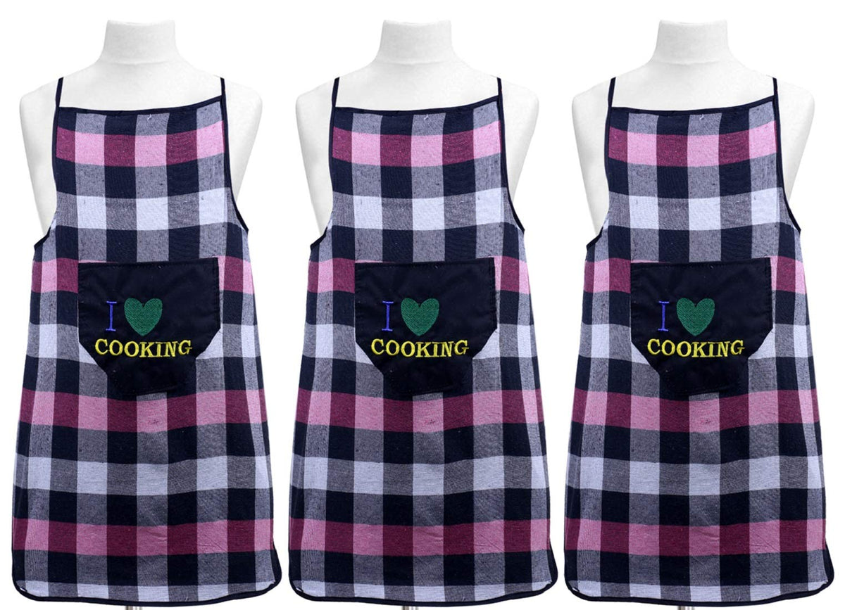 Kuber Industries apron is water proof, helps you cook, wash or do any kitchen work without stressing that your clothes will get damaged. Covering from chest to knee provides great coverage and protection against kitchen grease, spills and food stains. It is the primary choice for ordinary kitchen and family gatherings. No more worrying about getting your clothes dirty. It can be used for cooking at schools, restaurants, catering business, hotels, food handling or production kitchen, banquet, catering business, etc place. The aprons are very easy to care for. They are machine washable and recommended to be washed without the use of harsh bleach and detergents.Made of high quality pure cotton material with durable Stitching that makes it long lasting.This has a thin plastic layer which makes it waterproof and it also has a front pocket. This protects your clothes from food stains, splatters and kitchen grease. This kitchen linen ensures your clothes stay clean while you chop, dice, fry and more.