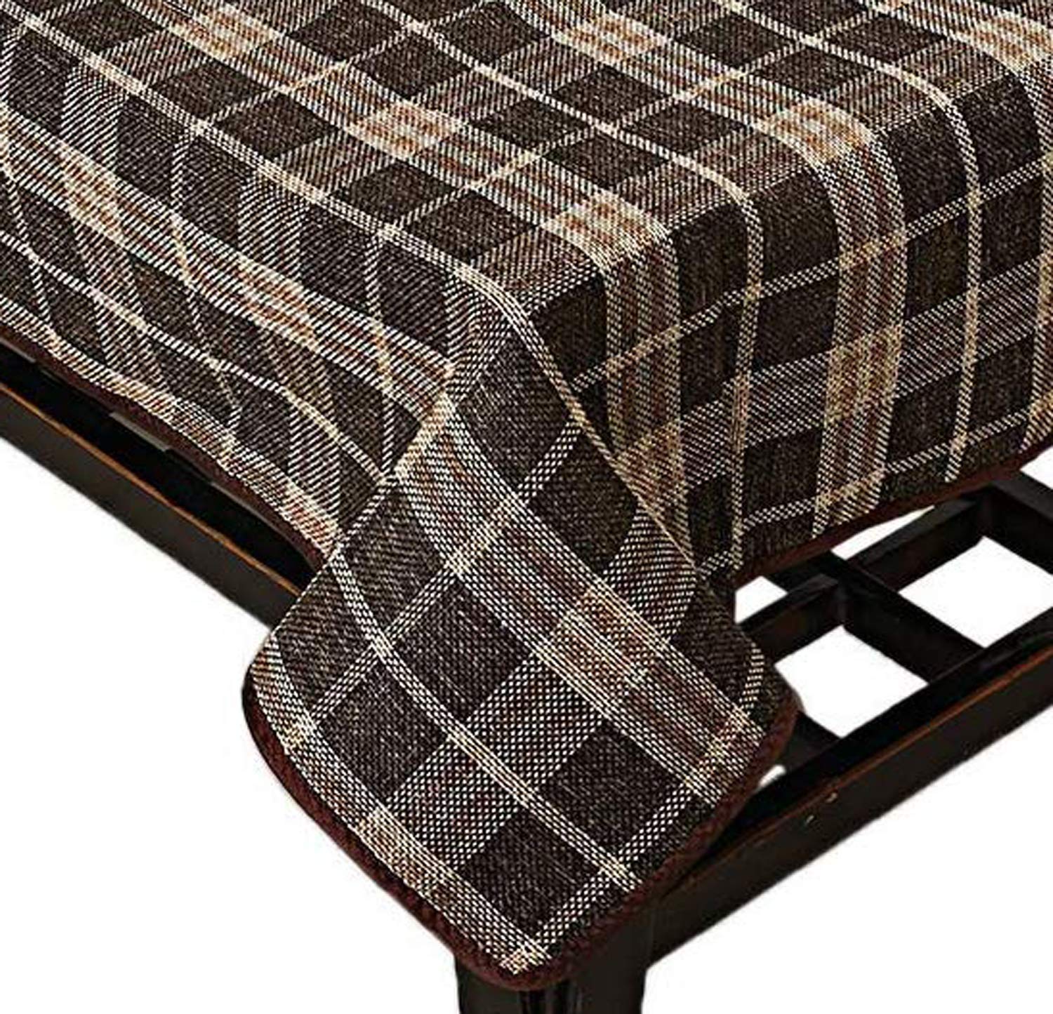 Kuber Industries Checkered Design Jute 4 Seater Center Table Cover 40"x60" (Brown)-CTKTC32227
