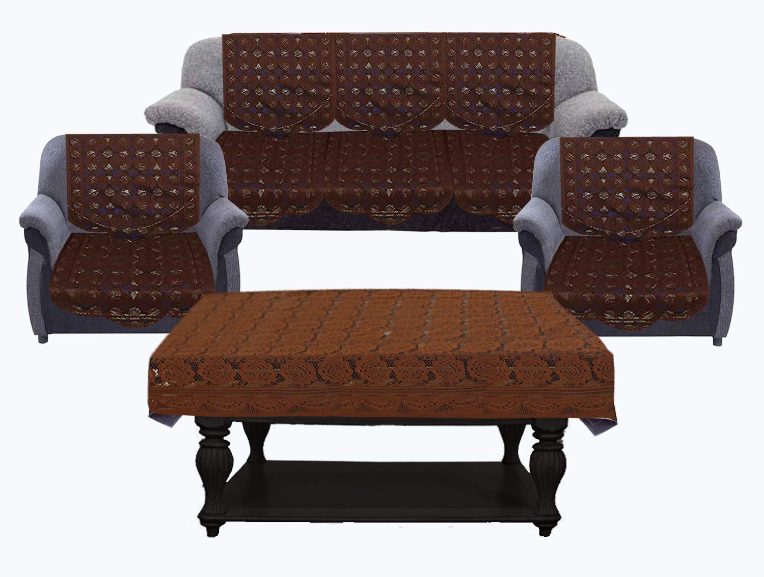 Premium quality sofa cover: 1 long back cover for 3 seater sofa, 1 long 3 seater seat cover, 2 back covers, 2 seat covers for single seat sofa and 1 centre table cover. Protect: Our stylish furniture slip cover protects furniture from stains, dust, dirt and pet hair. Great for homes, offices with babies, kids, dogs and cats. Perfect fit: Fits perfectly on each and every kind of sofa, made from high quality material. Easy care: Machine wash and hand washable (cold) and dry (cool). Dimensions in cm (lxw): Sofa seat cover- 178x74, sofa back cover- 178x74, chair seat cover- 74x61, chair back cover- 74x61, table cover dimension- 40*60 inches. Color- brown, package content- 6 piece sofa cover and center table cover.