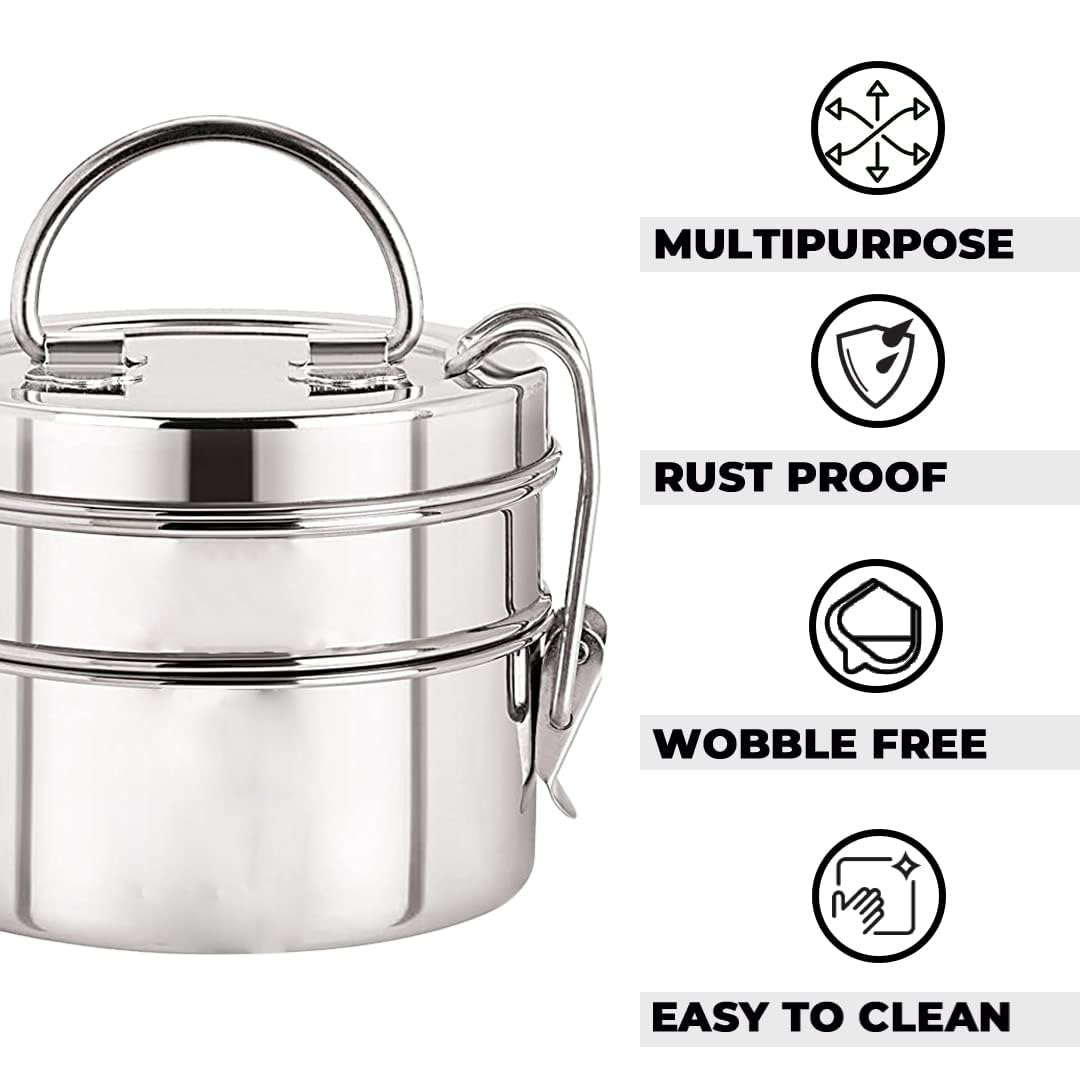 The stainless steel tiffin box with locking clip makes it spill proof to carry food to school, office, camping, hiking etc. keeping it fresh all day.Detailed Specifications: