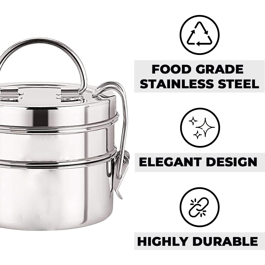 The stainless steel tiffin box with locking clip makes it spill proof to carry food to school, office, camping, hiking etc. keeping it fresh all day.Detailed Specifications: