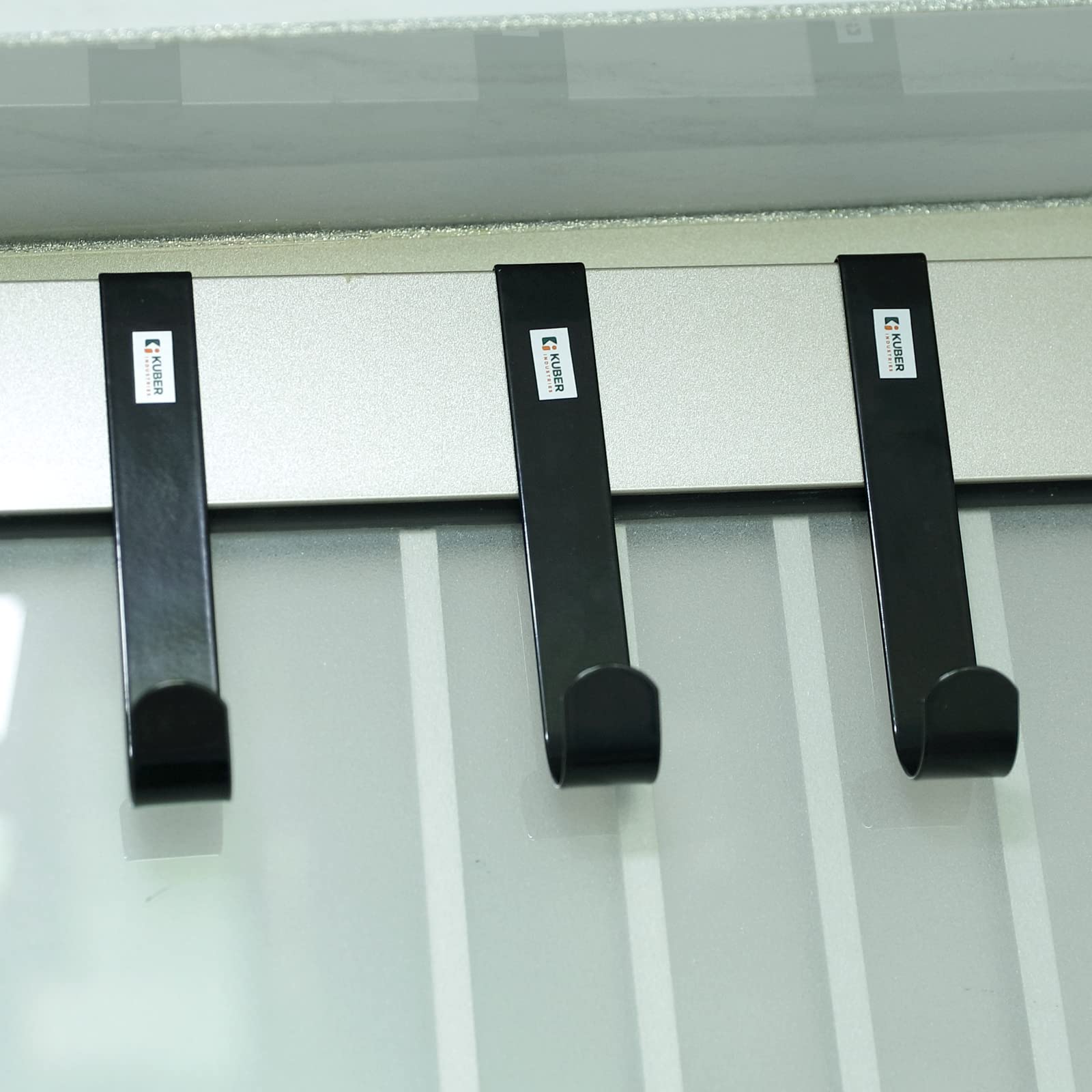 Kuber Industries Towel hanger for bathroom is made of Good quality stainless steel which makes it sturdy and durable while having an attractive finish. Each cloth hanger attaches to the wall surface easily with a strong, self-adhesive sticker. They come in a pack of 6 and are easy to install on a flat wall surface. There is no need for hammering, noisy drilling, and technician support. Compatible with most wall surfaces such as glass, tiles, and cement. They are easy to fit and level and can be installed within seconds according to your height and location preferences. Remove them just as easily as you installed them, they are ideal for rented apartments. Compact in size measuring just (1.2 X 2.4 X 15.5) MM yet can store all sizes of towels ranging from the body to face towels making them the perfect bathroom accessories of today that provide storage solutions for cramped spaces. As a kitchen organiser, it will hang your paper towels and cloth towels making them easier to pick up & use while cooking. Use them as a cloth hanger for drying clothes inside your bathroom when you are running out of space on your clothing line.| | | | |