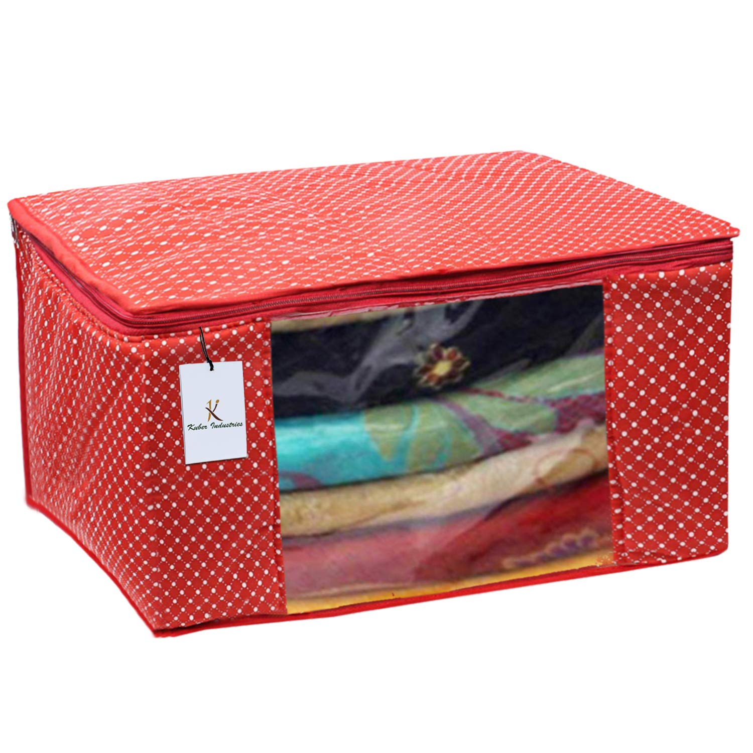 Kuber Industries saree cover is made of quality cotton material. This is very attractive, durable and long-lasting. Kuber Industries bring saree cover for your convenience. This is the perfect solution to keep expensive sarees and other garments in one bag to avoid dust, insect and other particles. This has a transparent plastic sheet so that you can identify the sarees remotely. You can keep 10 to 12 sarees in it and this has premium quality zipper for easy opening and closing.