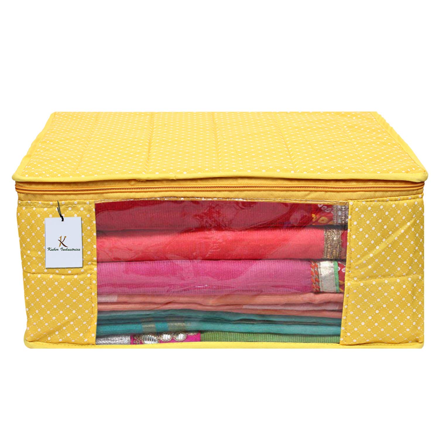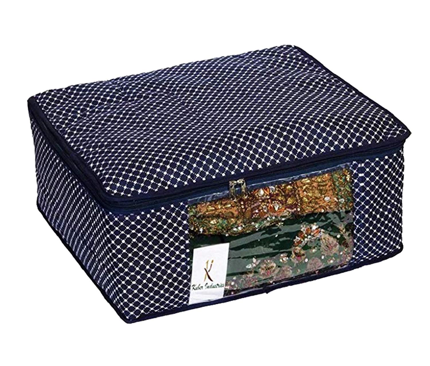 Set of 3 pieces in heavy quilted cotton polka dots material. Dimension-17 x 8 x 14 inches. It's a best option to use while travelling and it will help you to keep your saree in a separate cover from other items in your luggage. Prevent your favourite silk or cotton sarees from dust and moisture.Detailed Specifications: