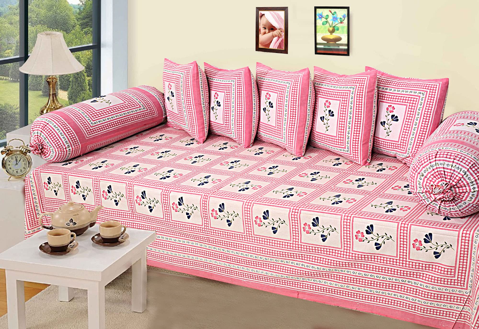 Kuber Industries present beautiful designer diwan set 8 piece combo with 5 cousins cover,2 bolster cover and 1 single bedsheet.this diwan set is design for decor your home and guest room. We travel all over world for discover beautifull designs .When you Have so many cushion around and bolster under your arms you surely goona feel like a heaven.Detailed Specifications: