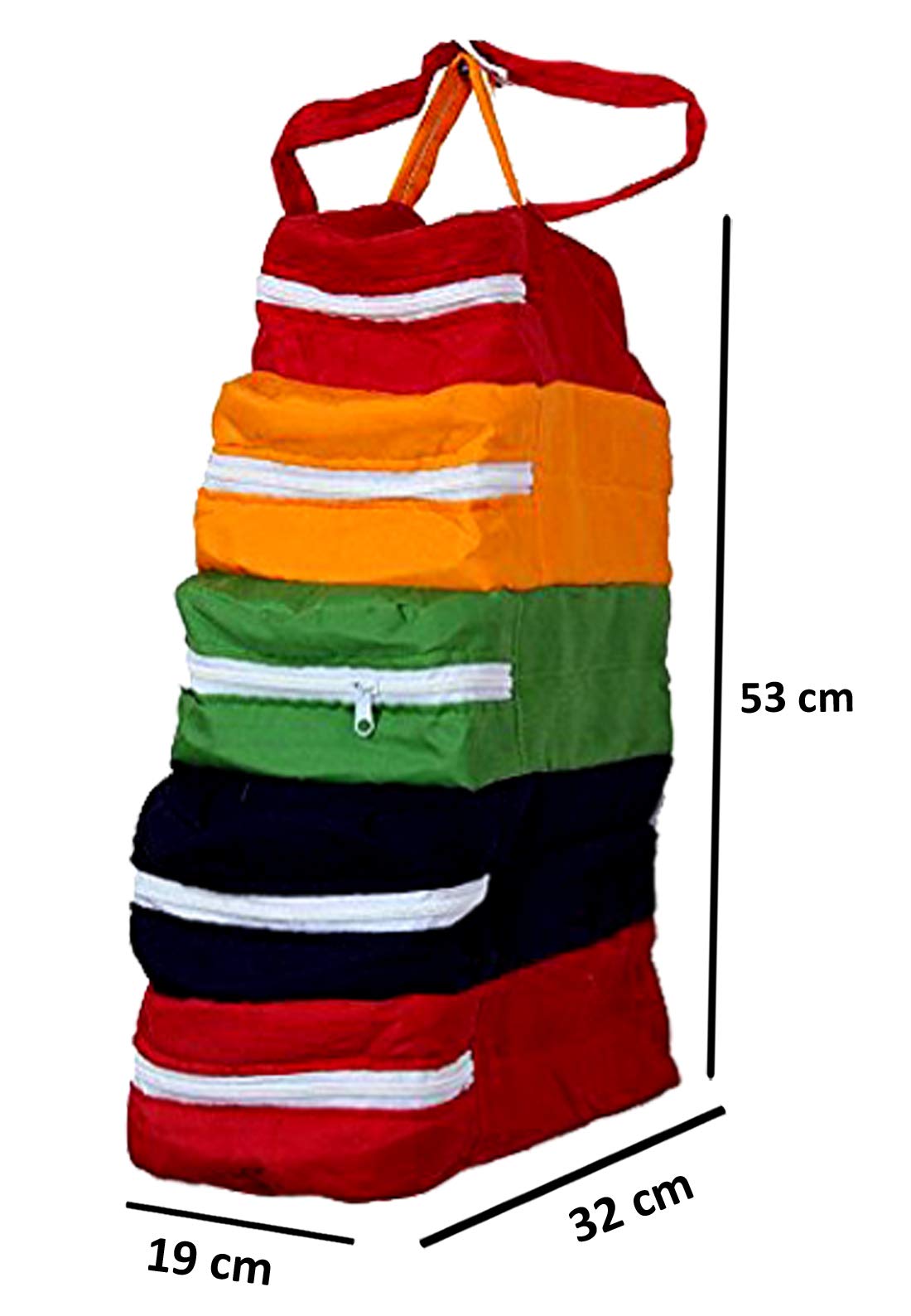 Five pocket multipurpose rack with zip cover.Long life quality Rexine cover for organizing your Shoes /sandal ,slipper.It's a best option to use while travelling and it will help your Shoes in a separate cover from other items in your luggage.These Parachute shoe bags cater to the needs of budget customers. Product Dimensions 31 x 23 x 21 cm so it can easily strore your sports shoes/big shoe.