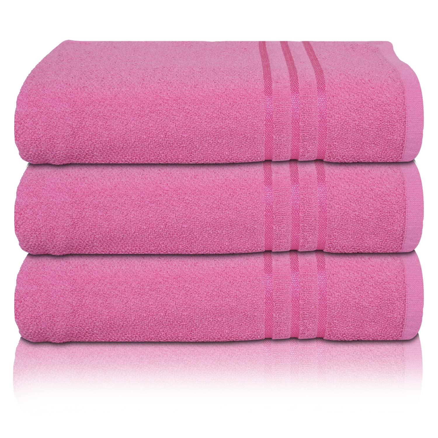 Kuber Industries Cotton Super Absorbent Bath Towel|Anti-Bacterial & Quick Dry Towel for Bath,Beach,Yoga,Fluffy,Pack of 3 (Pink,Large)