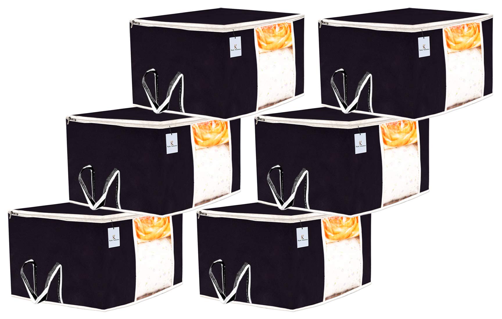 Package Contents: 6 Piece Underbed Storage Bag, Material: Non Woven, Color: Black, Size: 65 cm x 47 cm x 34 cm, Made from durable, wear and tear-resistant non-woven fabric. Lightweight and flexible organiser fits under multiple beds, Carefully stitched to offer additional strength. Size of each bag: 65 cm x 47 cm x 34 cm,Transparent see-through window for easy identification of contents. Durable zipper for easy opening and closing, Under bed storage bags for dust, dirt and pest-free storage. Attached handles for convenient pulling and lifting.Kuber Industries's Underbed Bag keeps your quilts, blankets, pillows, bedsheets, towels, summer and winter clothing organized. It is perfect for storing those off-season things not needed. It easily goes inside wardrobe, in the bed storage section, shelves, and reduces clutter in wardrobes and closets.The bag can be folded back when not in use. It collapses flat for saving precious storage space.The Storage bag can be kept in your storage beds, closets, wardrobes, storage cabinets. It maximizes your storage space and is perfect for those not-so-frequently used items in your Households.