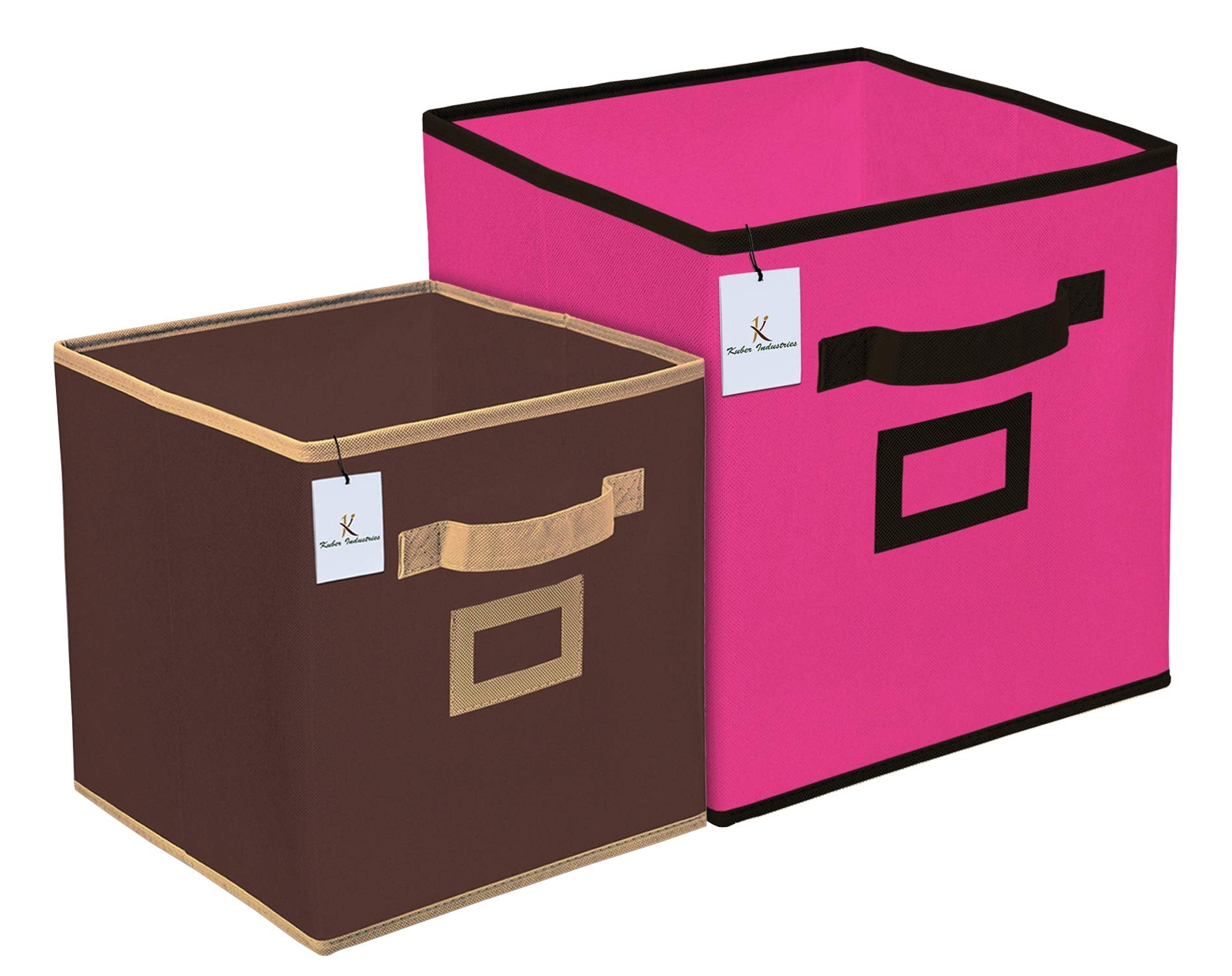 Material: Non woven, Color: Pink and Coffee, Package Contents: 2 Piece Small and Large Foldable Storage Organiser, Size: Large: 40 cm x 30 cm x 30 : 27 cm x 27 cm x 27 from durable, wear and tear-resistant fabric, Meticulously stitched for added strength, Enclosed box storage for neat and organised look, Prevents contact of stored items with dust, dirt, etc. Sturdy structure stays upright even when empty, Small and Large Foldable, lightweight and easy-to-store design, Simple and elegant organiser to complement various interiors, Ideal for storing toys, clothes, magazines, etc. Can be used as leg stool, office storage, etc. Clean using damp cloth, do not wash or dry.