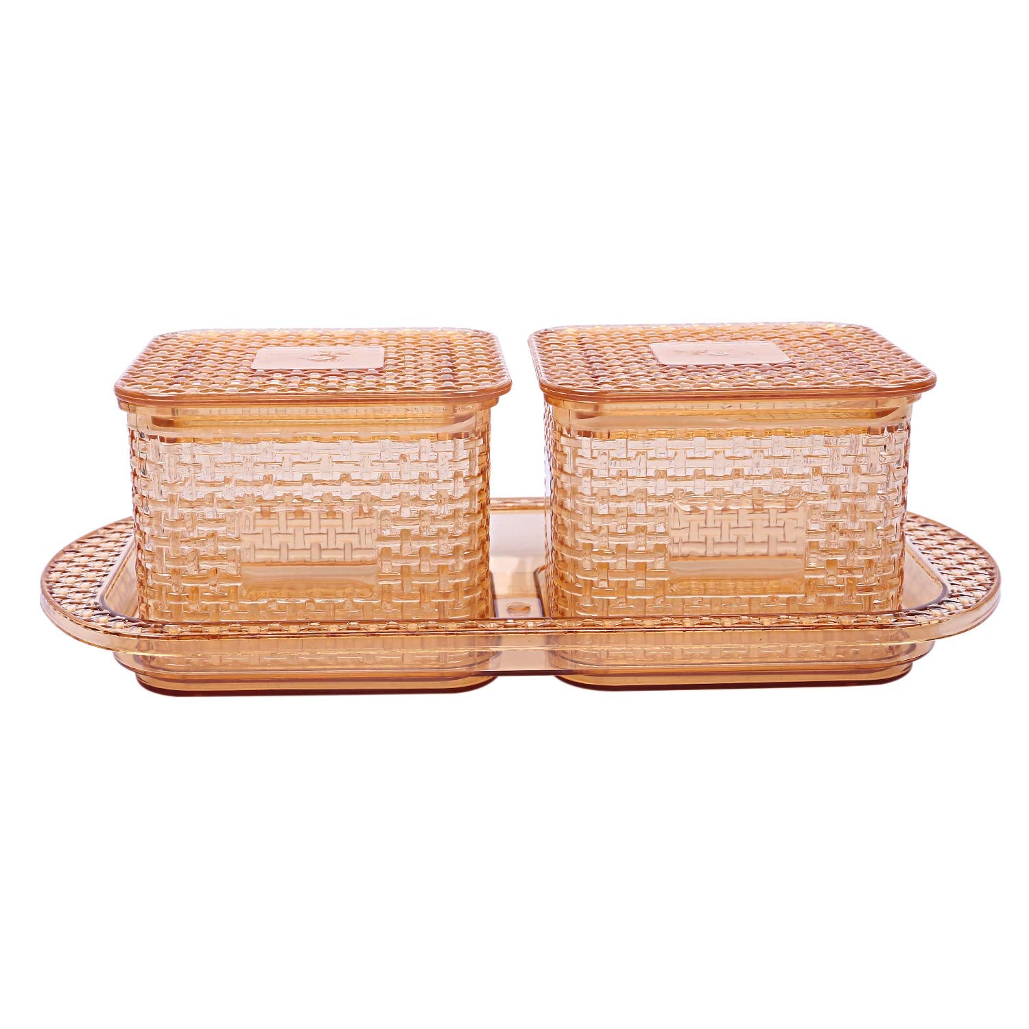 Kuber industries dry fruits tray is made of high quality plastic material which are 100 percent bpa (bisphenol a) free. Containers are 100 percent air-tight to preserve freshness inside. This tray comes with two dry fruits boxes or containers. This multi-purpose set of two jars with lid and tray is ideal for serving namkeen, dry fruits, snacks, mixtures, savouries in elegant style. This has an eye catchy look and excellent finish. This is used to serve and keep dry fruits, mouth freshener, chocolates, etc. This tray gives you a classy and royal touch to your serveware and you can impress your special guests with it. This can be an ideal gift for your friends, guests and familiar persons on any occasion.Detailed Specifications: