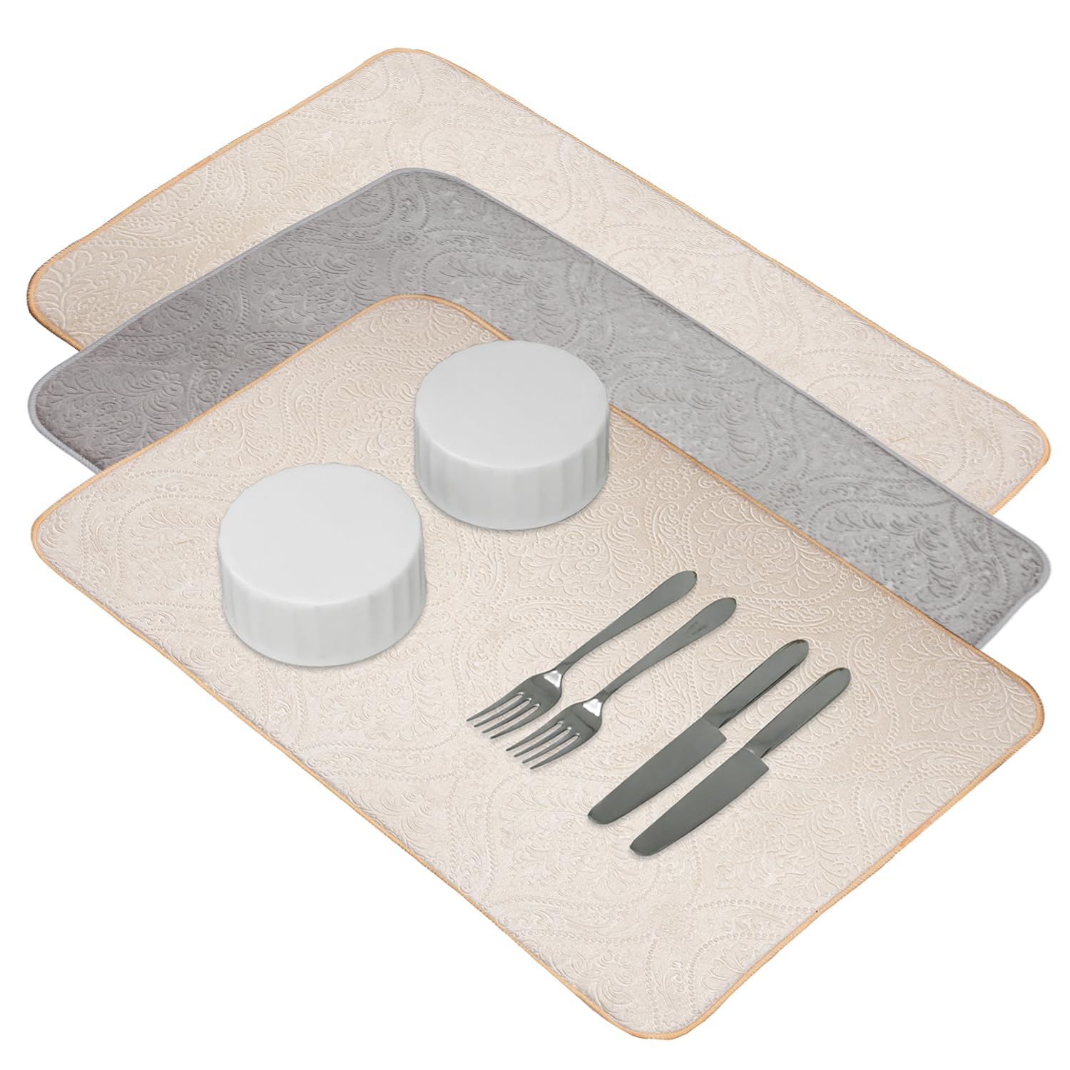 Introducing the Kuber Industries Microfiber Kitchen Dish Drying Mat ↪ an exceptional addition to your kitchen that sets new standards for convenience and cleanliness. Meticulously designed, this mat effortlessly whisks away moisture from freshly cleaned dishes, glasses, and utensils, leaving them impeccably dry and free of spots in mere moments. Its ultra-thin construction boasts unparalleled absorbency, rivaling bulkier alternatives, while maintaining a sleek profile that seamlessly integrates with any kitchen decor.Detailed Specifications: