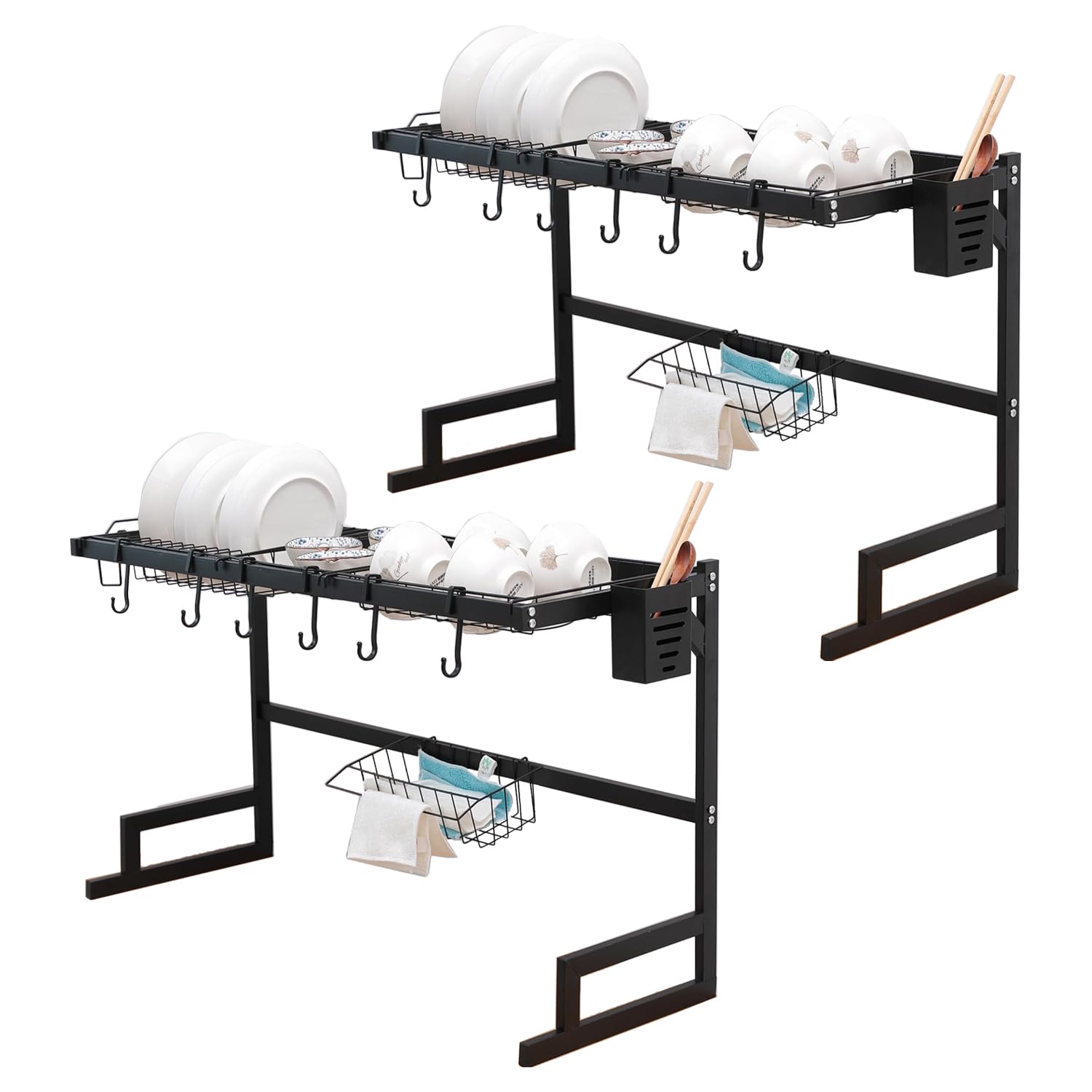 Kuber Industries Two-Layer Dish Drying Rack is a kitchen essential that combines efficiency and versatility. Its design prioritizes efficient drainage with a built-in drainboard, keeping your countertop dry and preventing bacterial growth. The multi-functional use of this rack extends beyond drying dishes, allowing you to store and organize various kitchen items. Constructed for stability, it features non-slip feet to ensure that your dishes and cookware remain secure. Its space-saving design is perfect for compact kitchens, as it maximizes vertical space while providing ample room for drying and storage.Detailed Specifications: