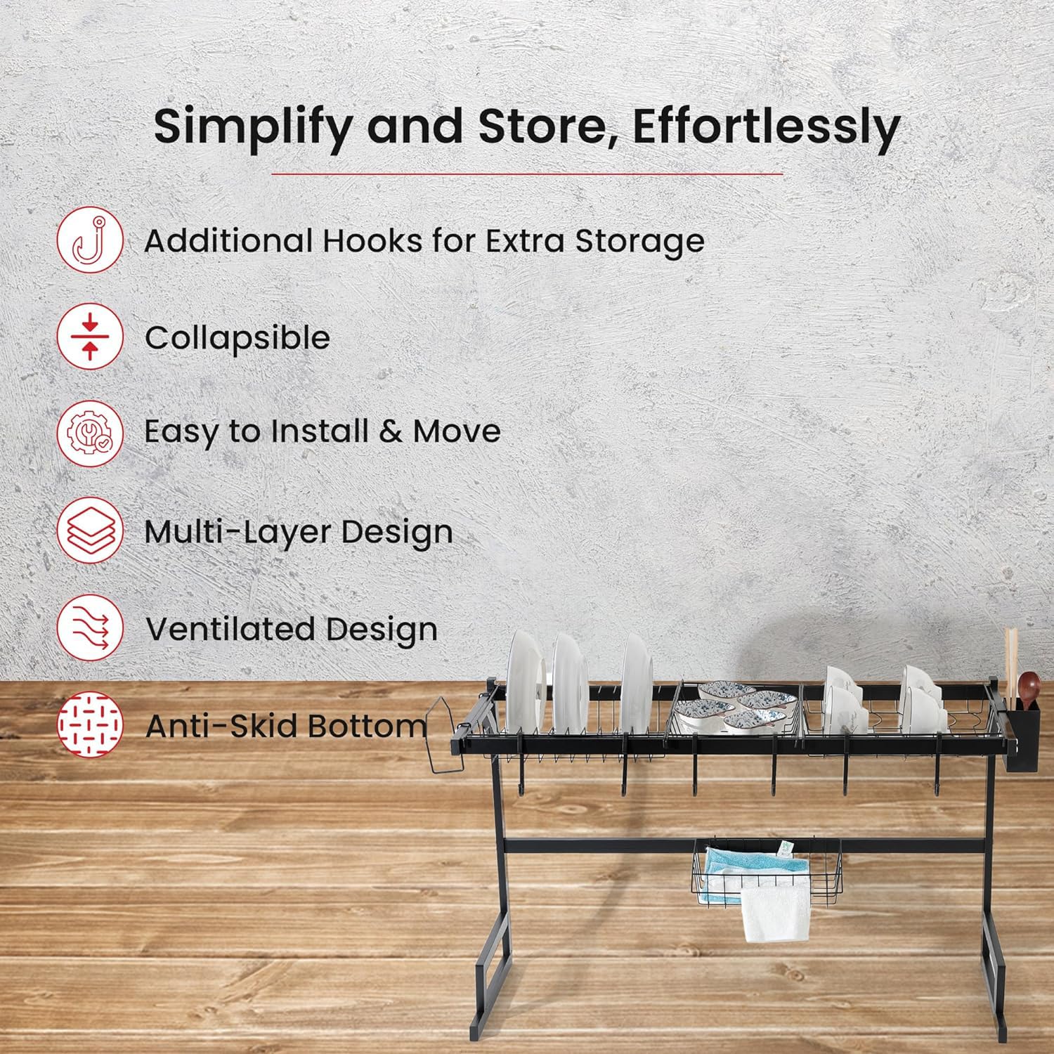 Kuber Industries Two-Layer Dish Drying Rack is a kitchen essential that combines efficiency and versatility. Its design prioritizes efficient drainage with a built-in drainboard, keeping your countertop dry and preventing bacterial growth. The multi-functional use of this rack extends beyond drying dishes, allowing you to store and organize various kitchen items. Constructed for stability, it features non-slip feet to ensure that your dishes and cookware remain secure. Its space-saving design is perfect for compact kitchens, as it maximizes vertical space while providing ample room for drying and storage.Detailed Specifications: