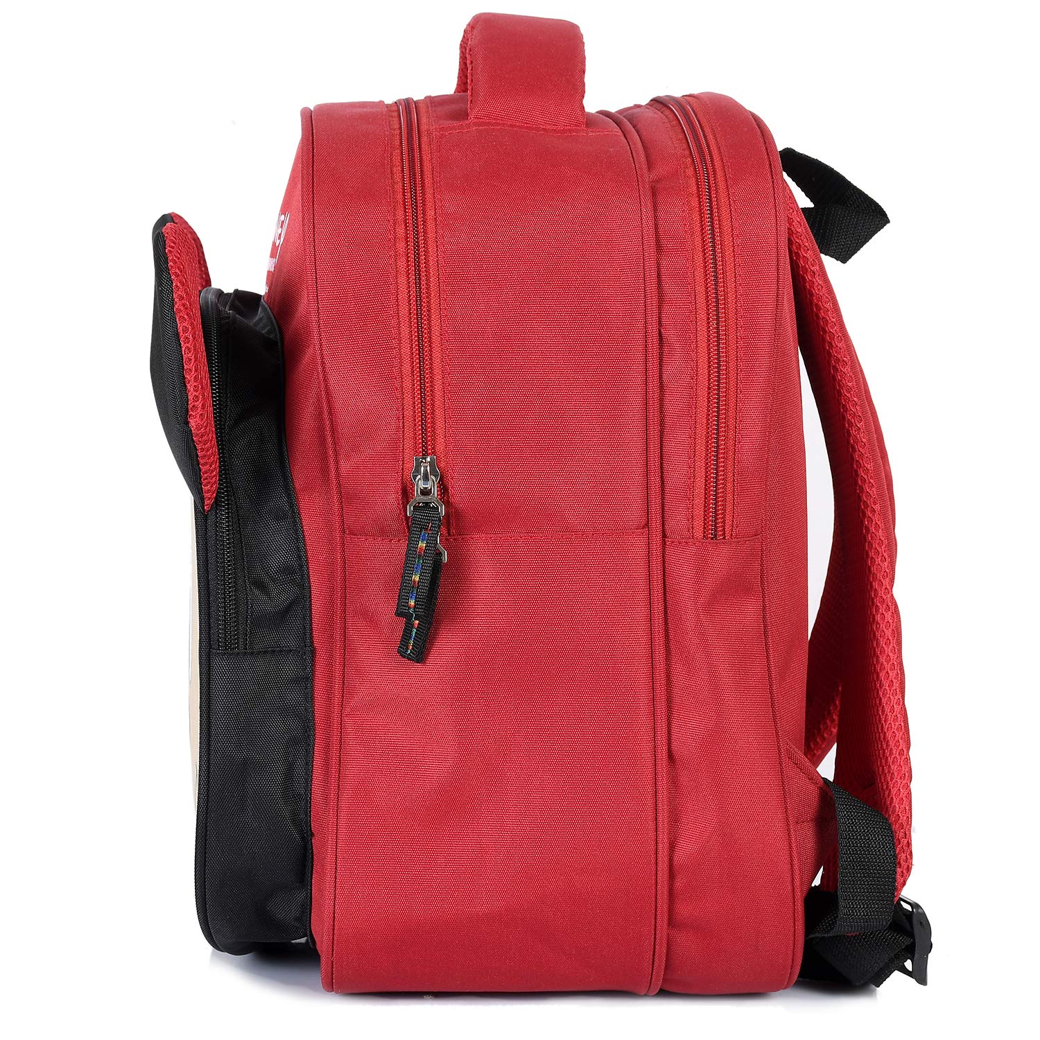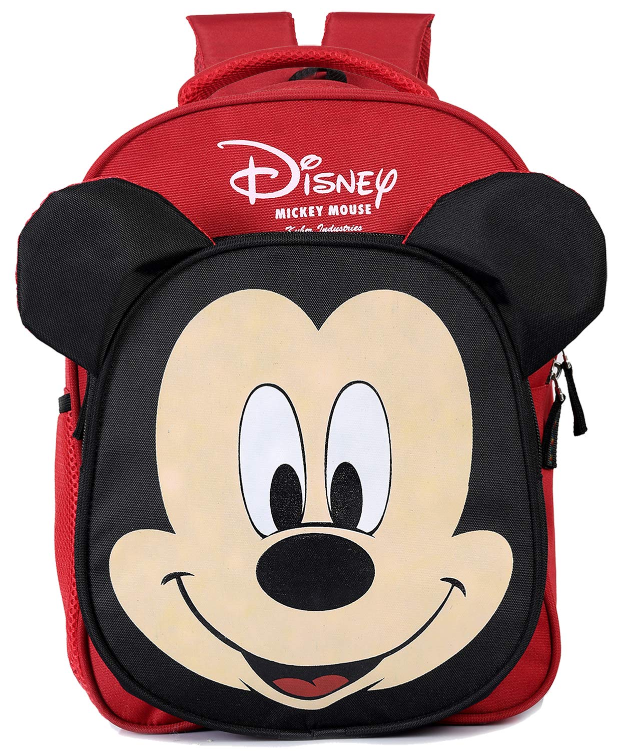 Outer Material: Polyester, Color: Red:: black.It is water resistant school bag..Number of compartments: 3. Capacity: 20 liters; Weight: 430 grams; Dimensions: 27 cms x 20 cms x 38 cms (LxWxH).this bag comes with attractive mickey print on front. Made up of durable and quality Polyester material. Spacious to accommodate all your essentials..Two adjustable shoulder straps. 2 main compartment and 1 front compartment 1 water bottle side mesh pocket. Haul loop. Light weight and easy to carry..Fashionable, light-weight, soft and colorful, a perfect gift for your kids. It is very soft and lightweight..Its can be used up to 5th standard class.Detailed Specifications: