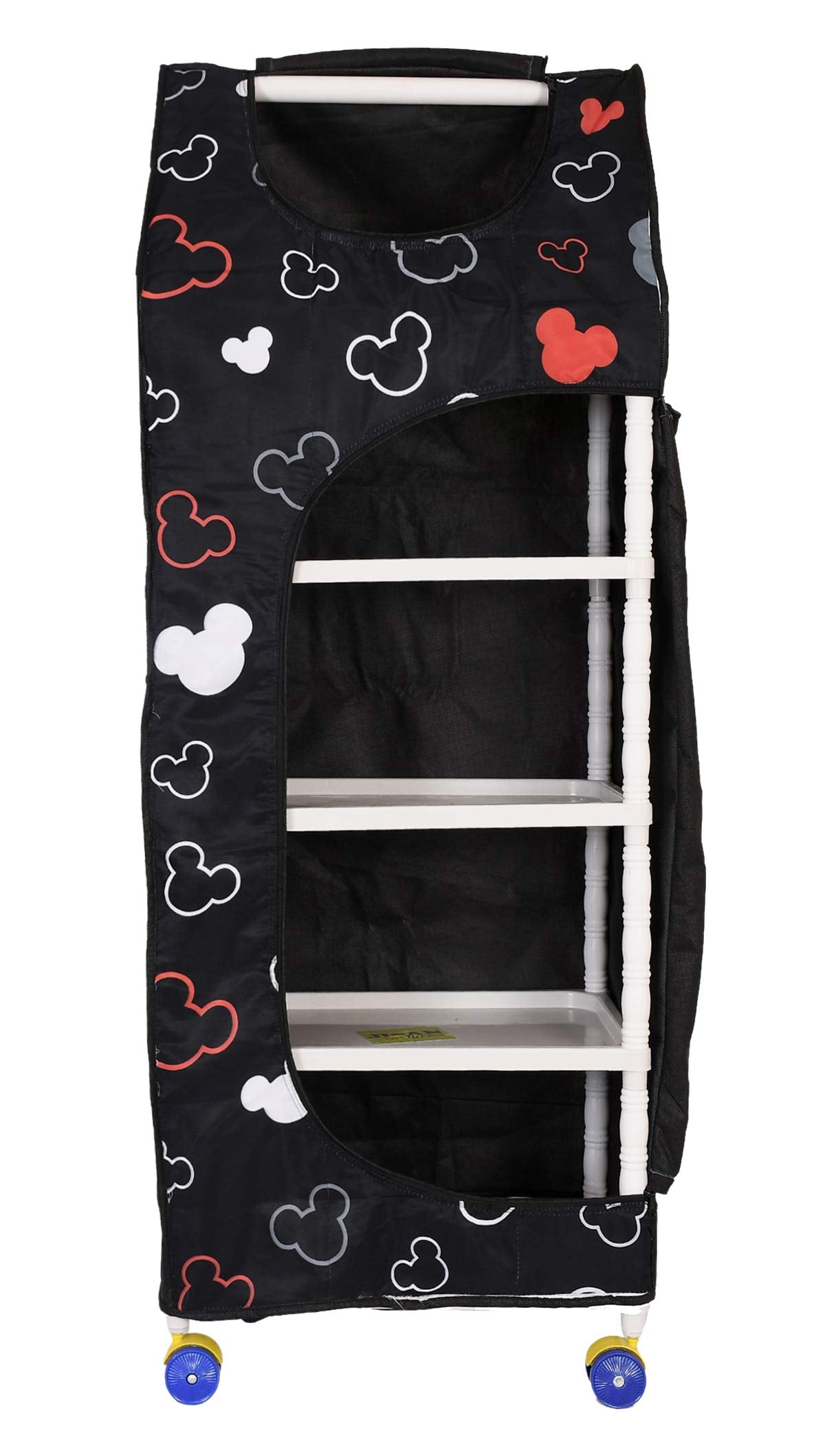Kuber Industries presents a new Disney Mickey Mouse Print foldable baby wardrobe/toy box having 5 plastic shelves. This wardrobe keeps the environment around your kids clean and hygienic by keeping all the things like clothes, shoes, toys, nappies etc. At one place. Kids would love to store their useful needed things in it. Beautiful wardrobe made of well stitched fabric for kids, etc. The unique selling point of this wardrobe is its strong and sturdy powder coated steel structure with anti-rusting features. The anti- rusting steel pipe has no sharp corners as it has been rounded to perfection for enhanced safety. The shelves are made up of plastic. Parents can use it to store kid's cloths and small playing items. It has a very attractive design with cartoon and fun loving aquatic print on the cover. It is very easy to assemble. The assembly time less than 15min. No tools are needed for assembly/disassembly. It is easy to move. You can put lots of stuff. Cover can be easily removed and washed. The cover is hand/machine washable. It has side pockets for storage of toys, bottles etc. This product is an ideal solution for storing clothes, shoes, books, toys and more. It reclaims the valuable space in any corner of a room. This product is an ideal gift set at child's birthday, ceremonies etc. Its compact packaging makes it a handy product. This product comes with 4 swivel wheels which ensures 360 deg movement, hence easy to move to any corner for the room. This product comes straight from the manufacturer with guarantee and is made in India. Legal disclaimers toys is the only sole owner of brand Kuber Industries and holds the right of a legal action if required, in case of any intellectual property rights violation is observed. Note: If for any reason you are unhappy with any product, please do not hesitate to contact us. We take full ownership and responsibility for the quality of our products and will do our best to solve your problem quickly and efficiently.Kuber Industries is a customer-loved brand that brings you everything you need to make a house a home. Right from nifty storage solutions to smart kitchen essentials, our products are known for their premium and durable quality.